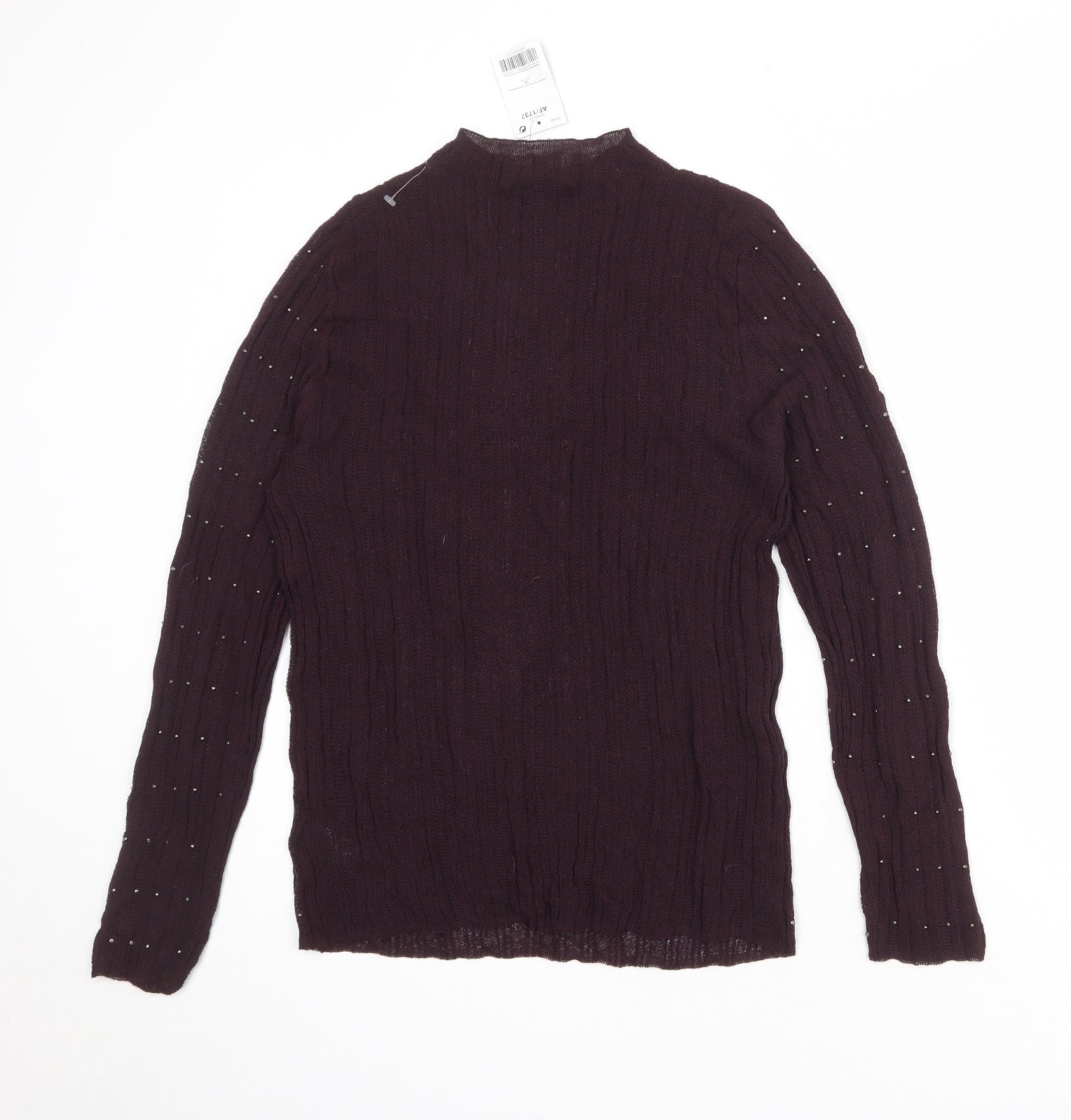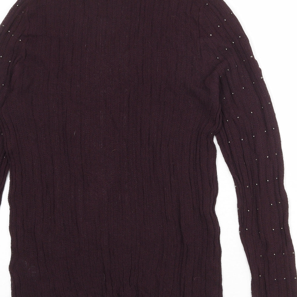 Womens Purple Mock Neck Viscose Pullover Jumper Size 16