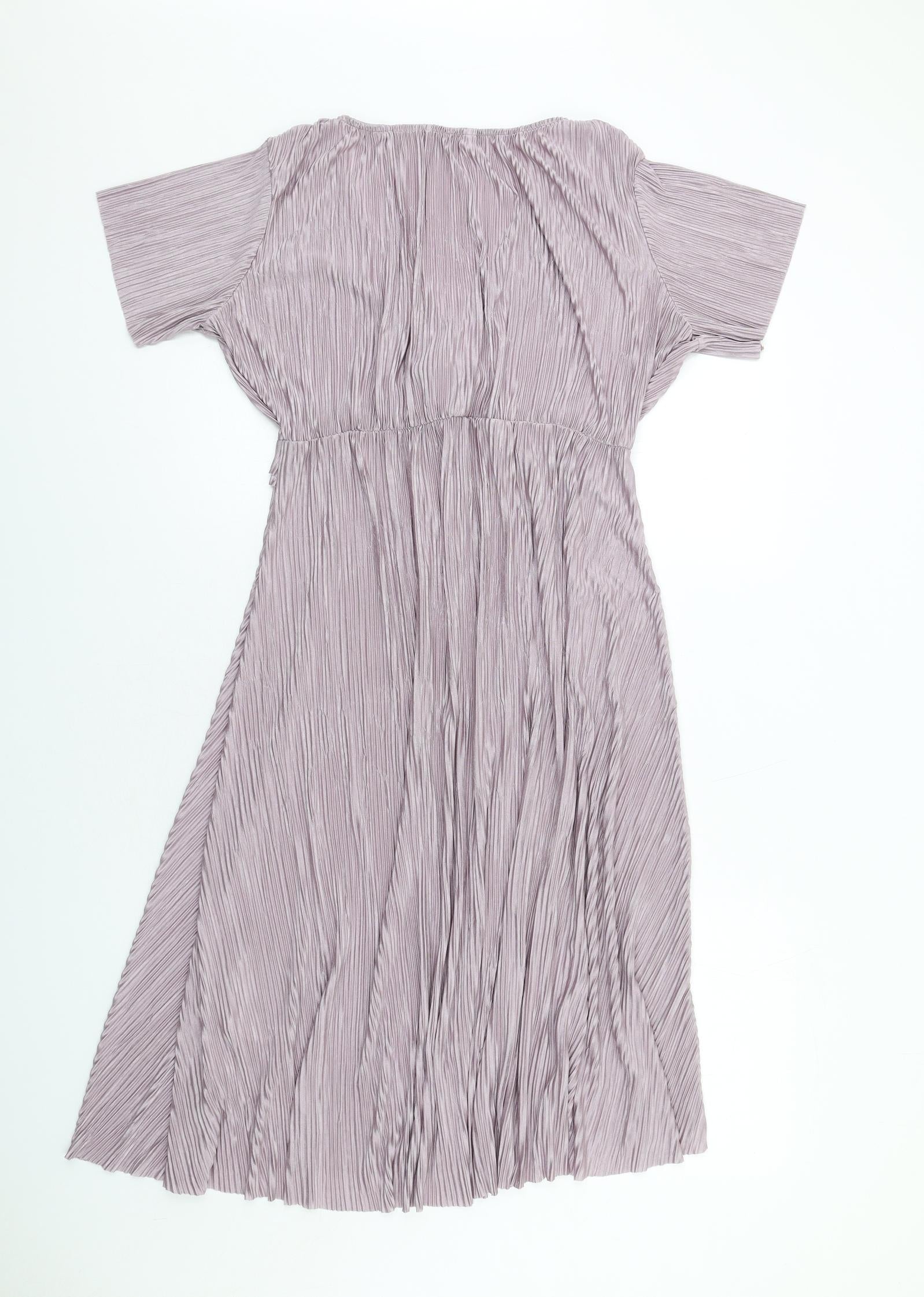 Womens Purple Polyester A-Line Size 14 V-Neck Pullover - Plisse