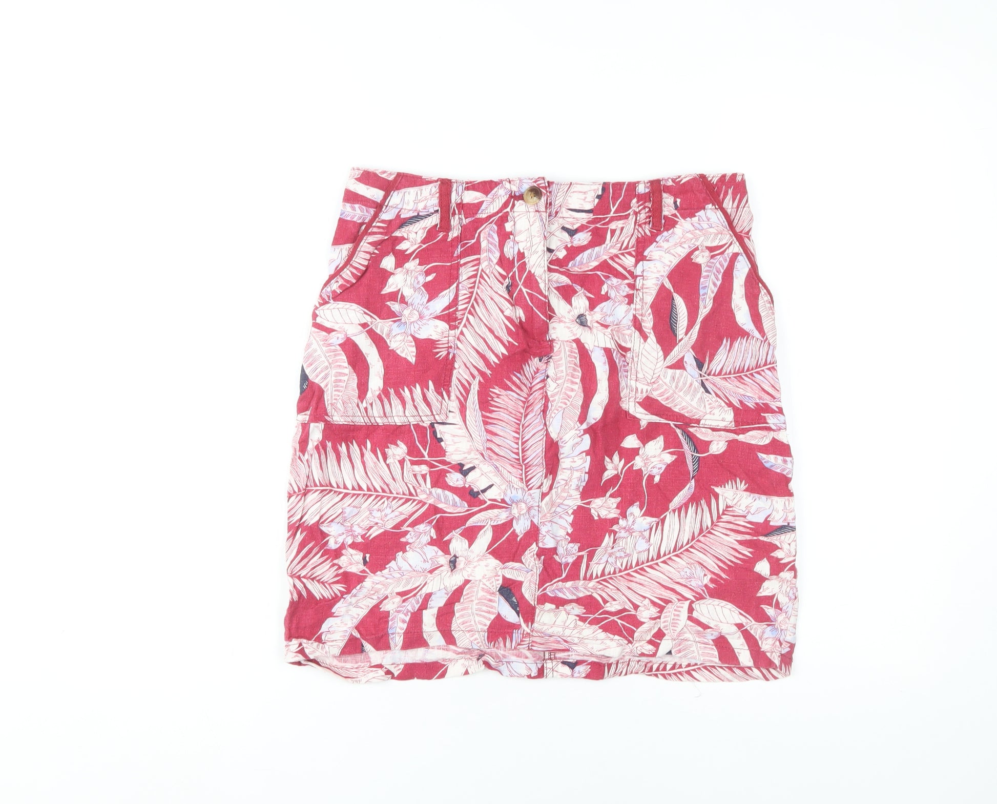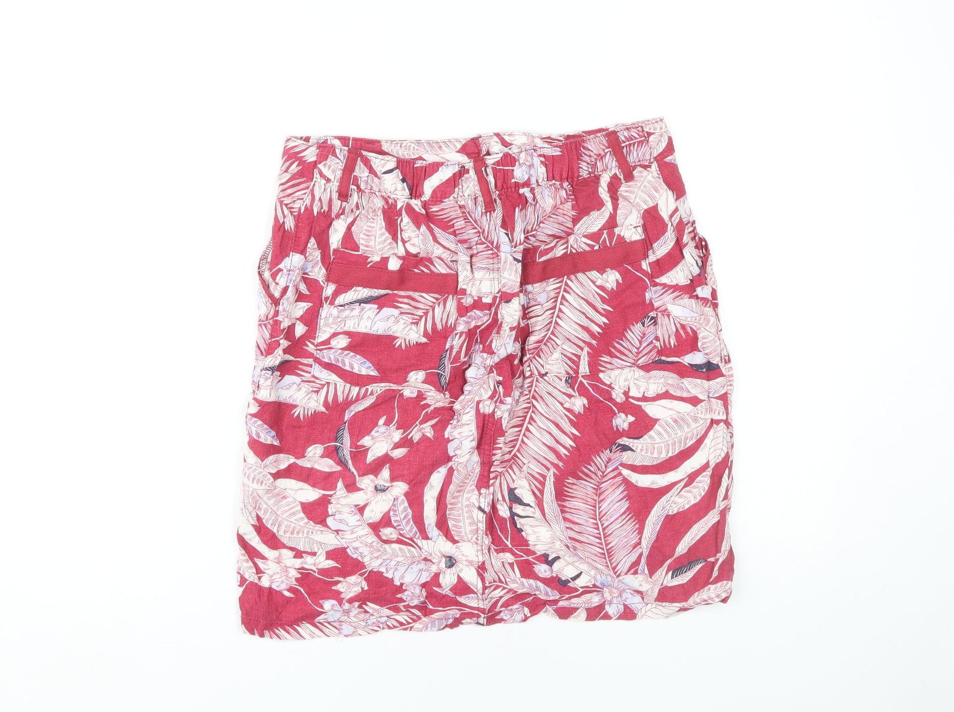 Next Women's Red Floral Skirt Size 12 Linen Blend