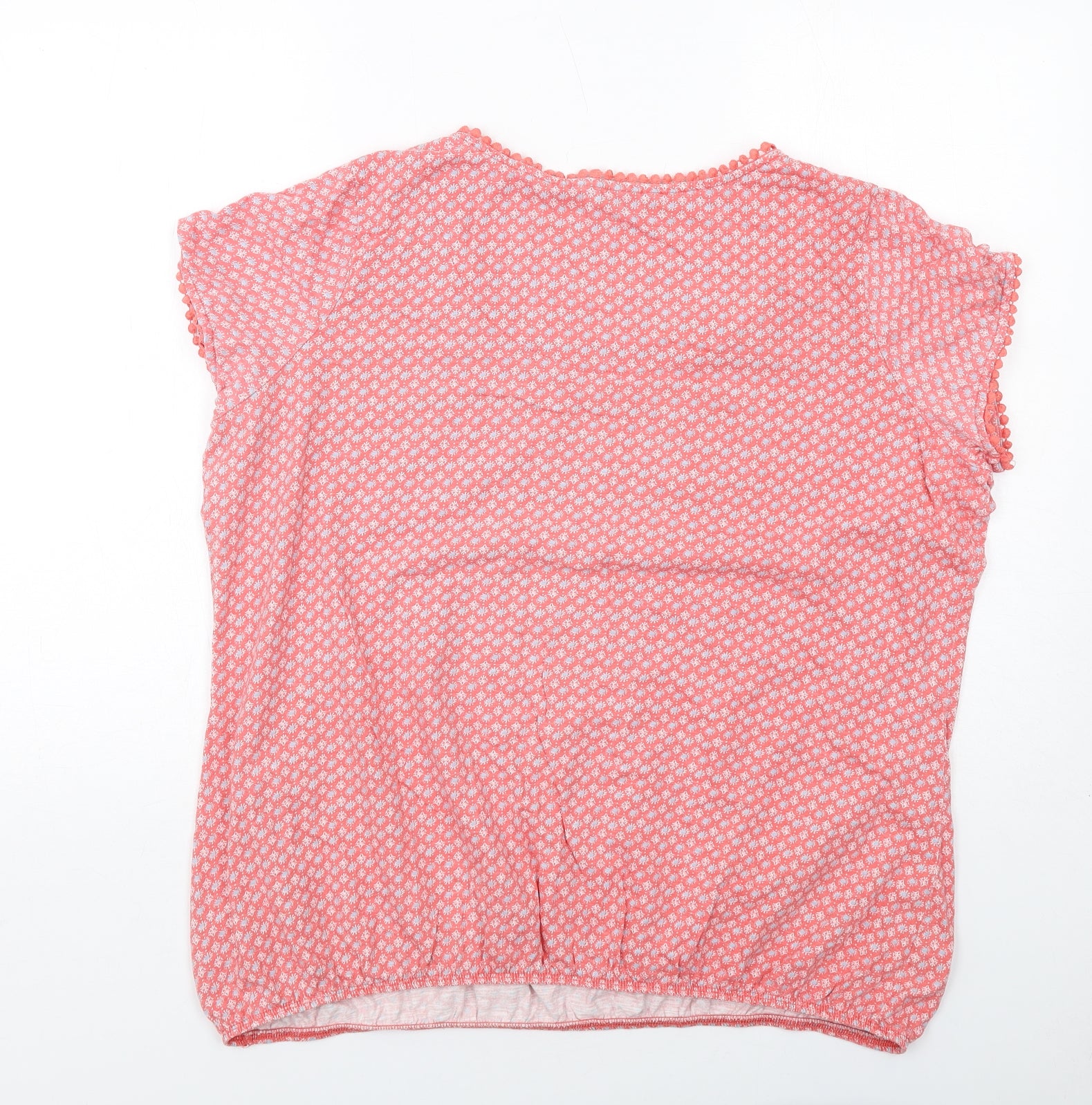 Womens Red Geometric Cotton Basic T-Shirt Size 22 Round Neck
