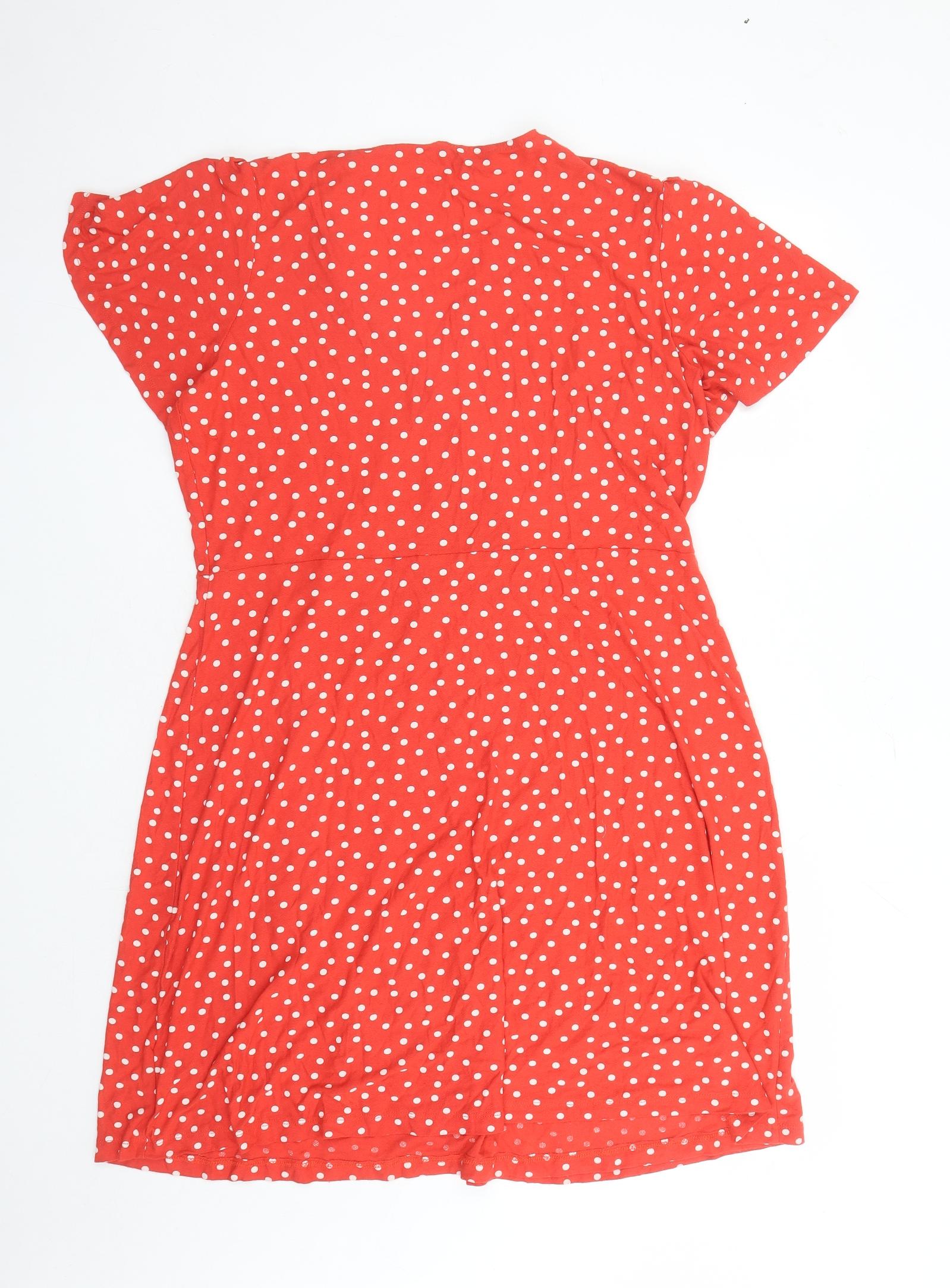 Womens Red Polka Dot Viscose A-Line Size 18 V-Neck Pullover - Button Detail On Sides