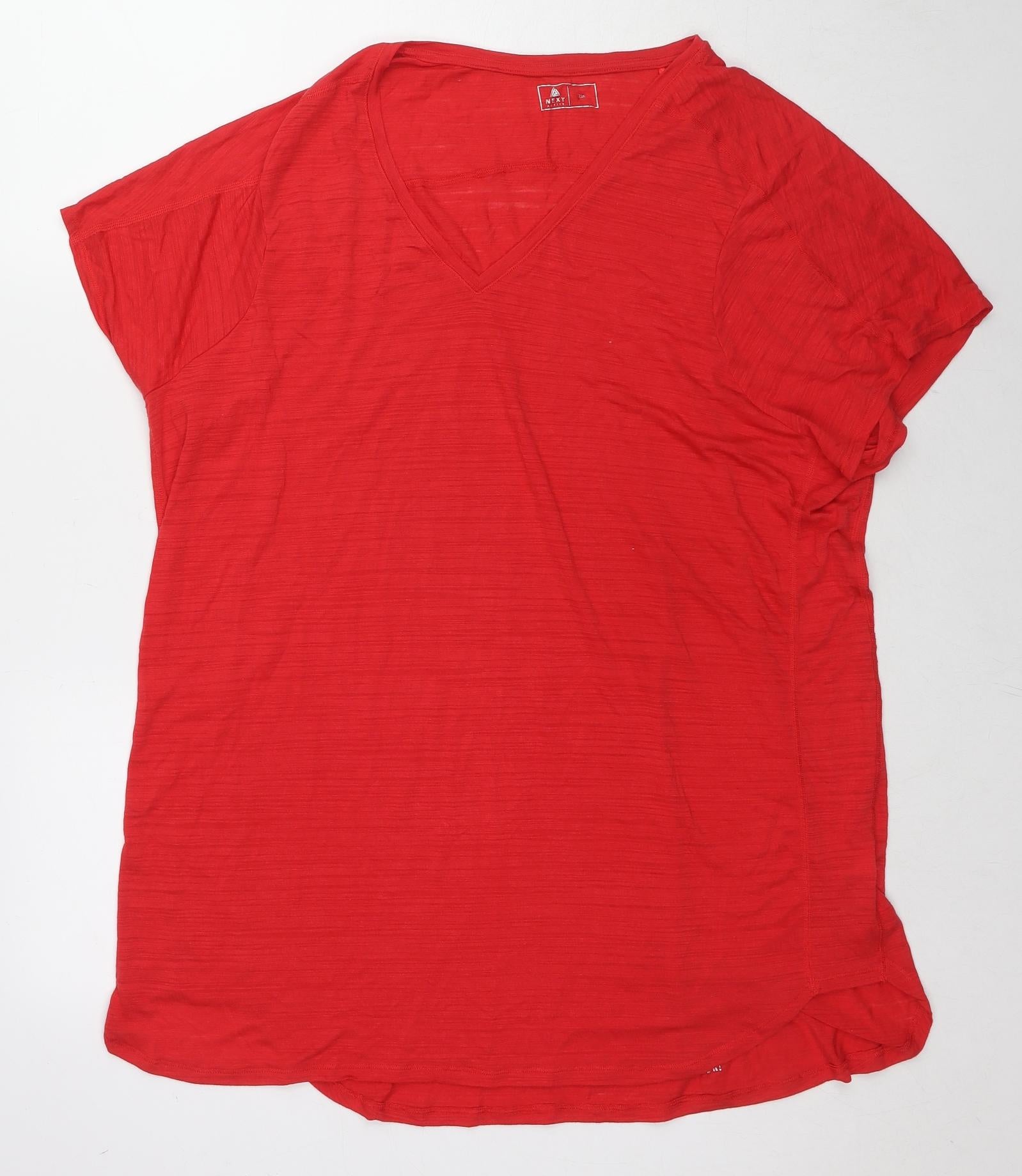 Womens Red Polyester Basic T-Shirt Size 2XL V-Neck