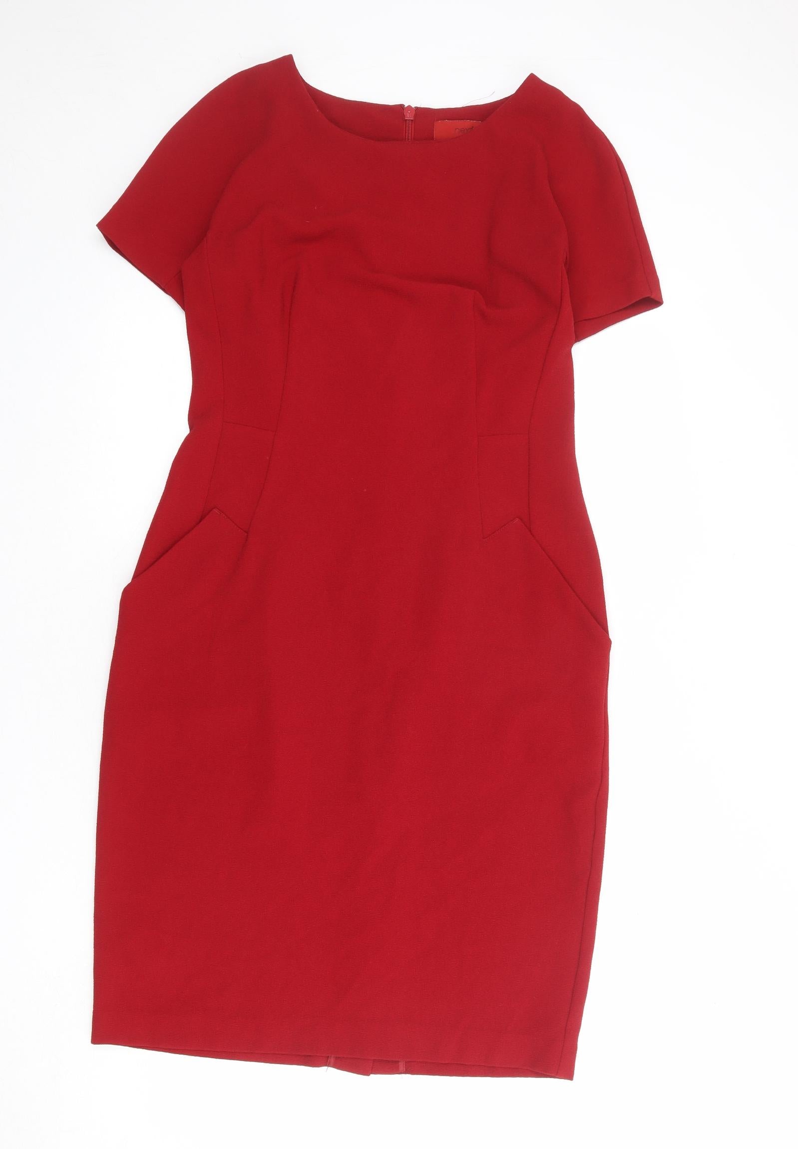 Womens Red Polyester Shift Size 12 Boat Neck Zip