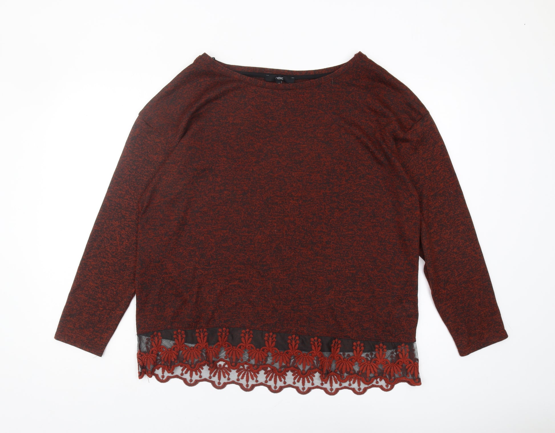 Elevate your casual wardrobe with this chic women's pullover jumper from Next. Designed in a warm red hue, this piece is perfect for adding a splash of colour to your autumn and winter outfits. Crafted from a comfortable blend of 58% polyester, 40% viscose, and 2% elastane, this jumper ensures all-day comfort and flexibility. The boat neckline and 3/4 sleeves offer a modern touch, while the lace accents at the hem add a feminine finish. Lightweight and easy to wear, this knit jumper is machine washable, making it a practical addition to your everyday attire. Whether you're out for a casual day or enjoying a relaxed get-together, this jumper provides style and comfort in one. With its excellent condition, this gently used piece is ready to enhance your wardrobe at an unbeatable price. Don't miss out on this versatile garment that combines style with comfort effortlessly.