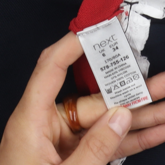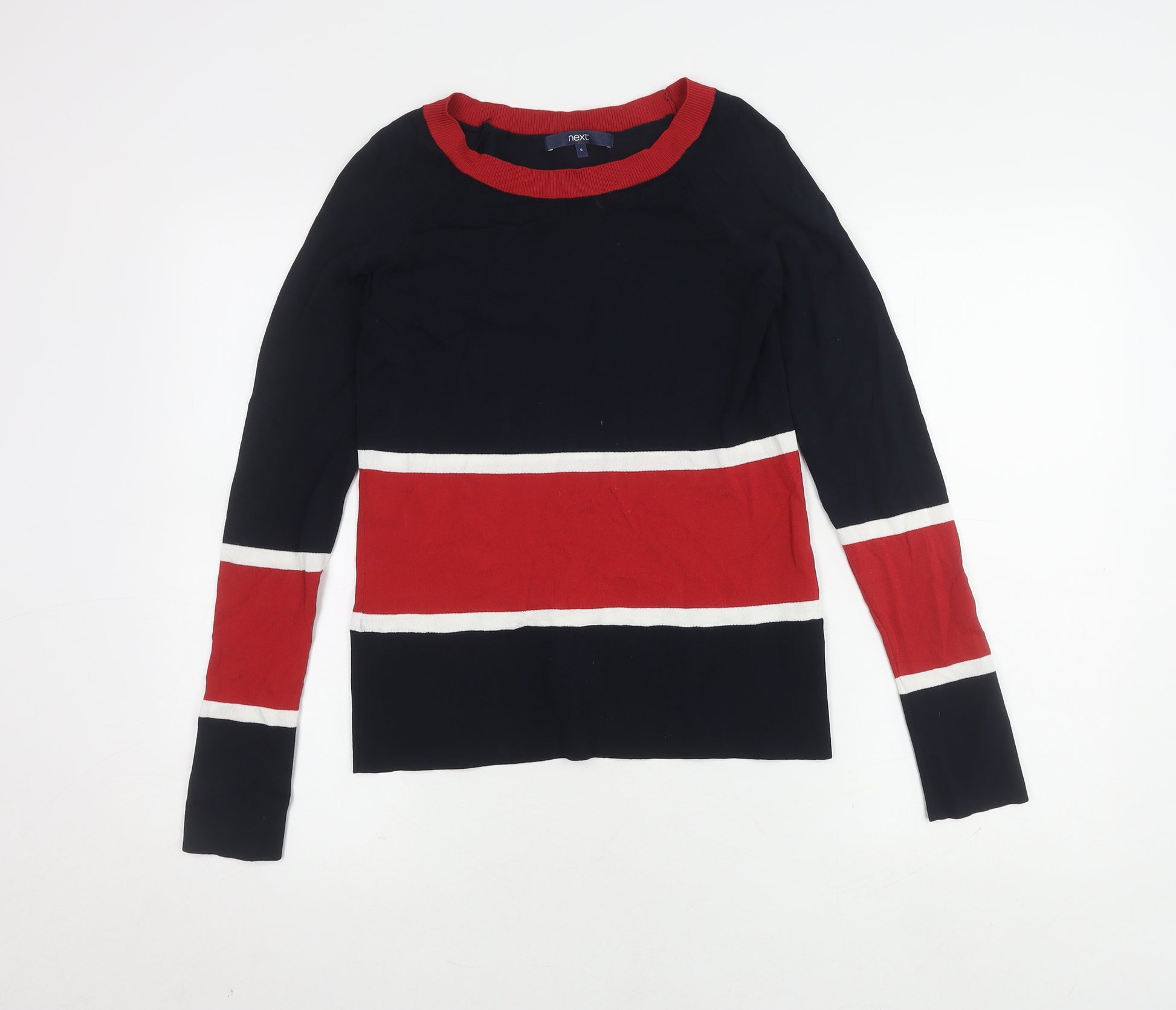 Elevate your casual wardrobe with this stylish women's jumper from Next. Crafted from a blend of cotton and viscose, this multisensory experience guarantees both comfort and warmth. The jumper showcases a vibrant combination of navy blue, red, and white stripes, making it an eye-catching piece for autumn and winter outings. Designed for women, it features a regular fit and is sized at UK 6, ensuring a flattering silhouette. The crew neck and long sleeves add classic elements while maintaining warmth and style. Its knit fabric type enhances durability and softness, giving it an inviting look and feel. Ideal for casual occasions, this jumper pairs well with jeans or trousers for a relaxed yet chic appearance. With the convenience of being machine washable, it's easy to maintain and perfect for regular wear. Whether you're stepping out for a coffee or running errands, let this jumper from Next add a touch of vibrant sophistication to your ensemble. Find your new favourite in this striped masterpiece and embrace the blend of comfort and style it brings to your everyday wardrobe.