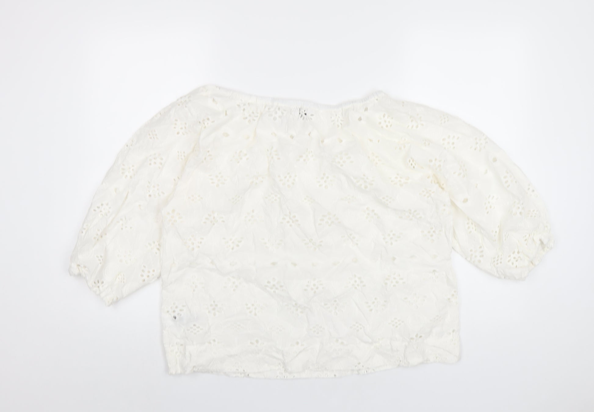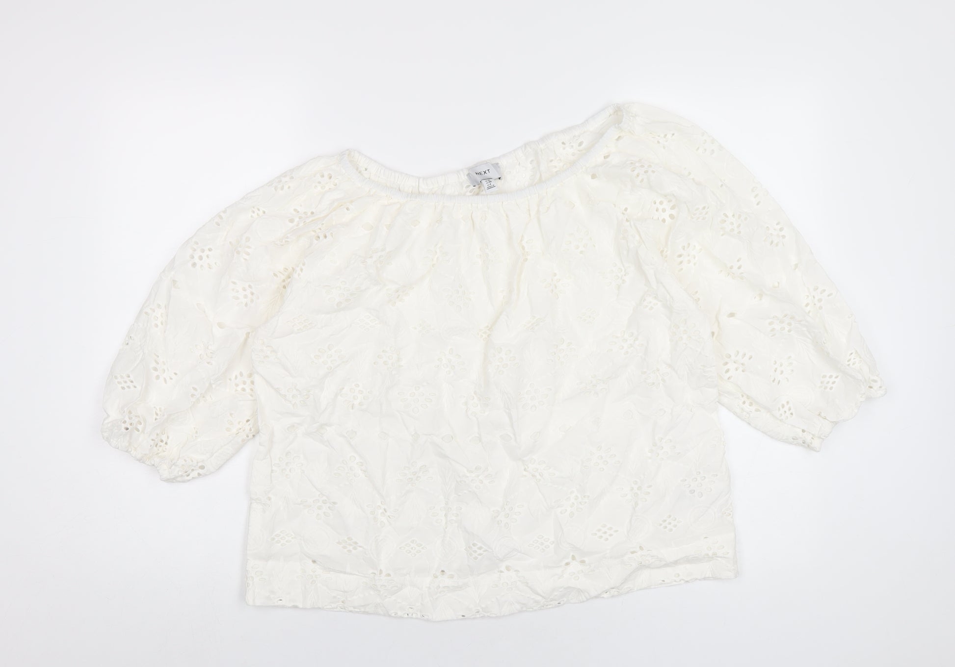 Womens White Cotton Basic T-Shirt Size 10 Boat Neck