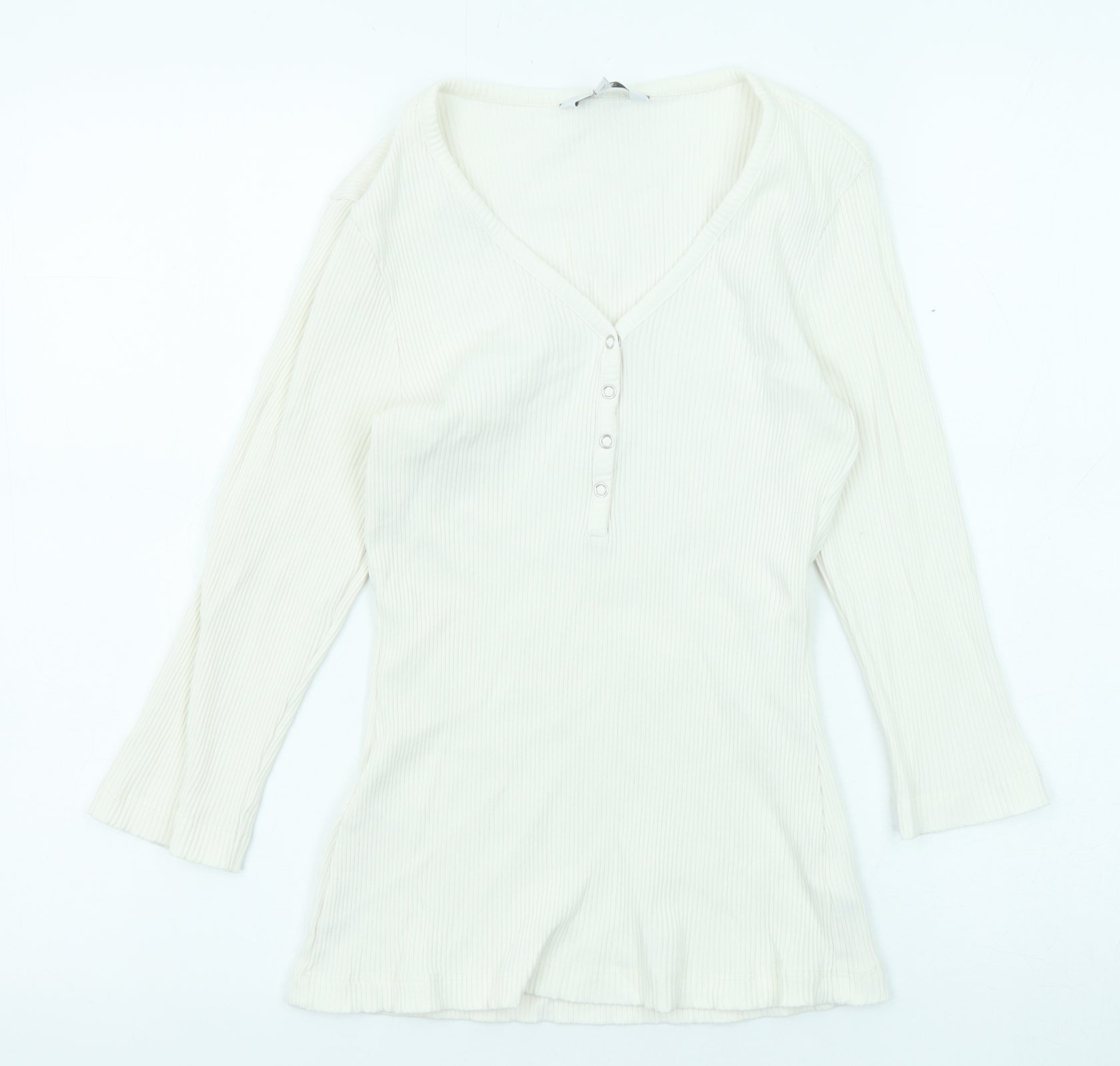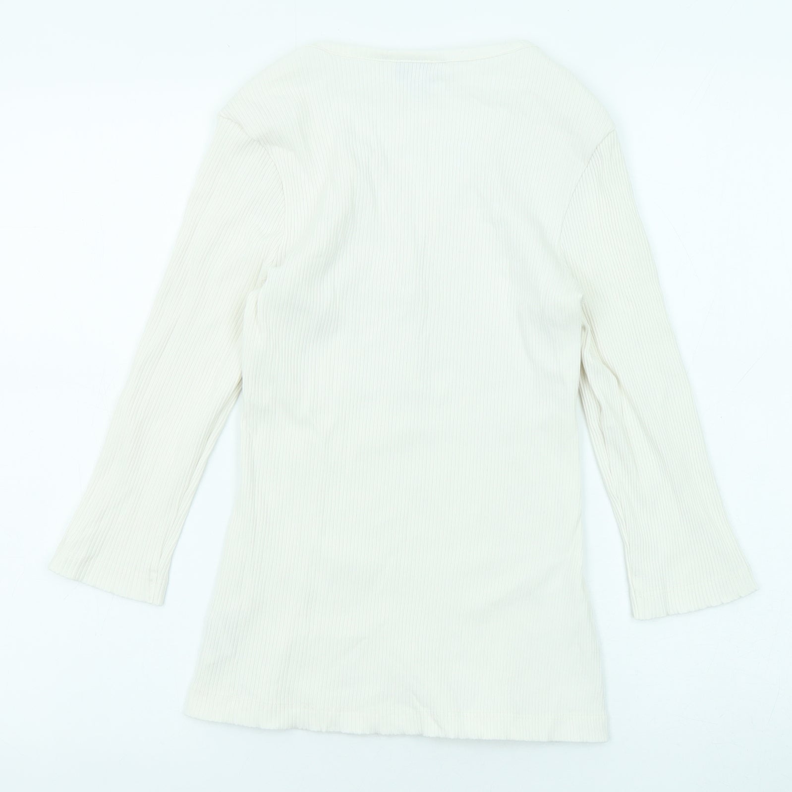 Womens White Cotton Basic T-Shirt Size 10 V-Neck