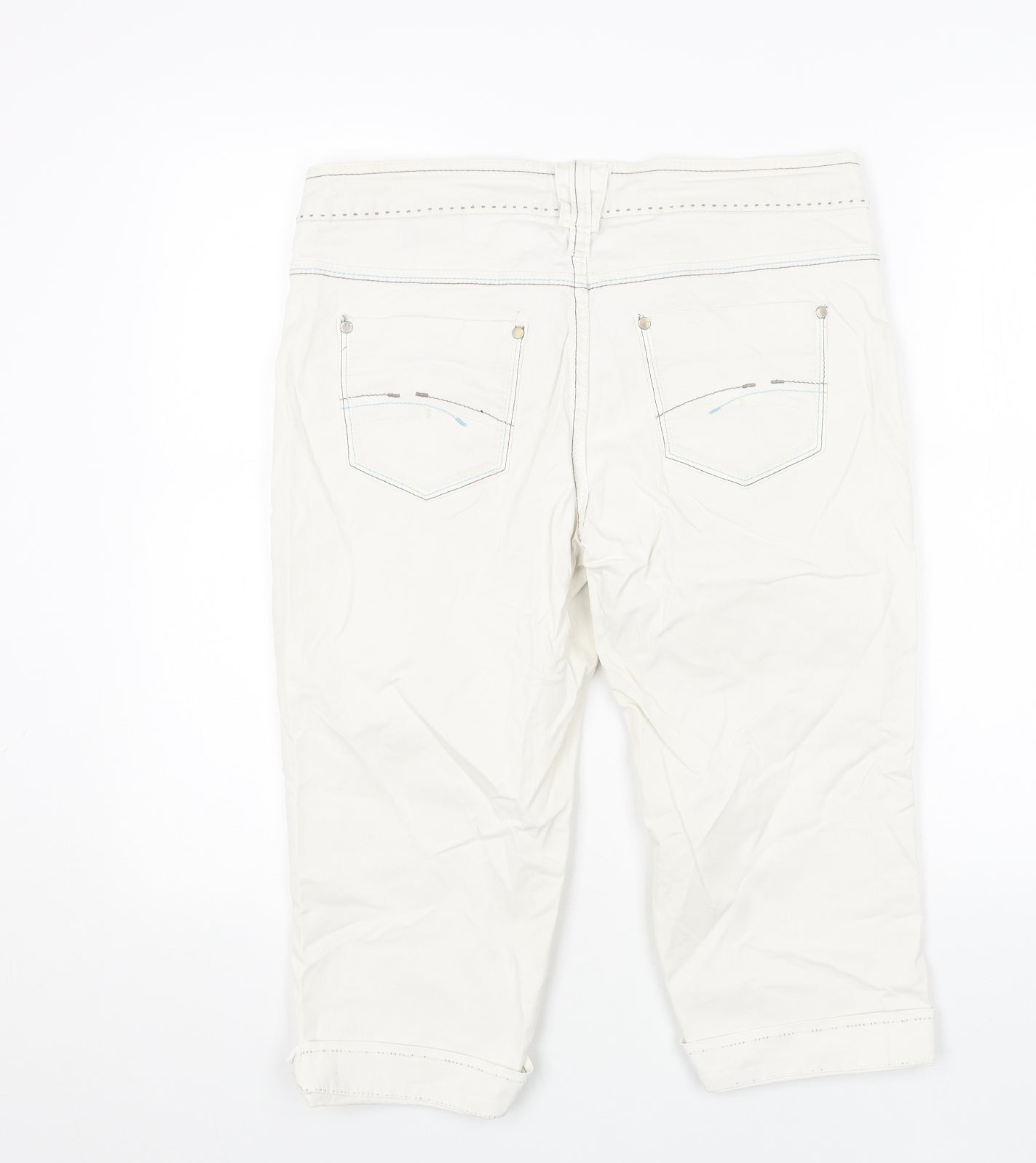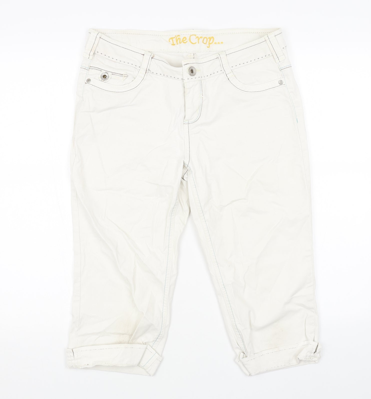 Womens White Cotton Cropped Jeans Size 12 Regular Button