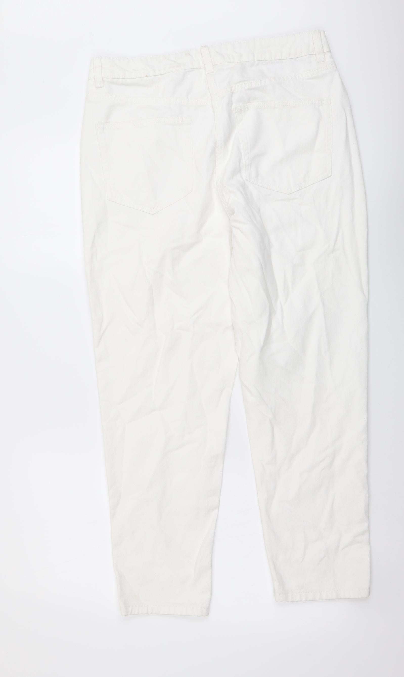 Womens White Cotton Mom Jeans Size 12 L26 in Regular Button