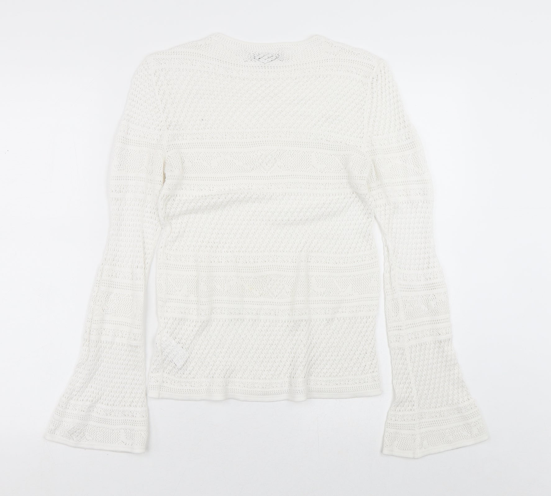 Womens White Crew Neck Geometric Viscose Pullover Jumper Size 10