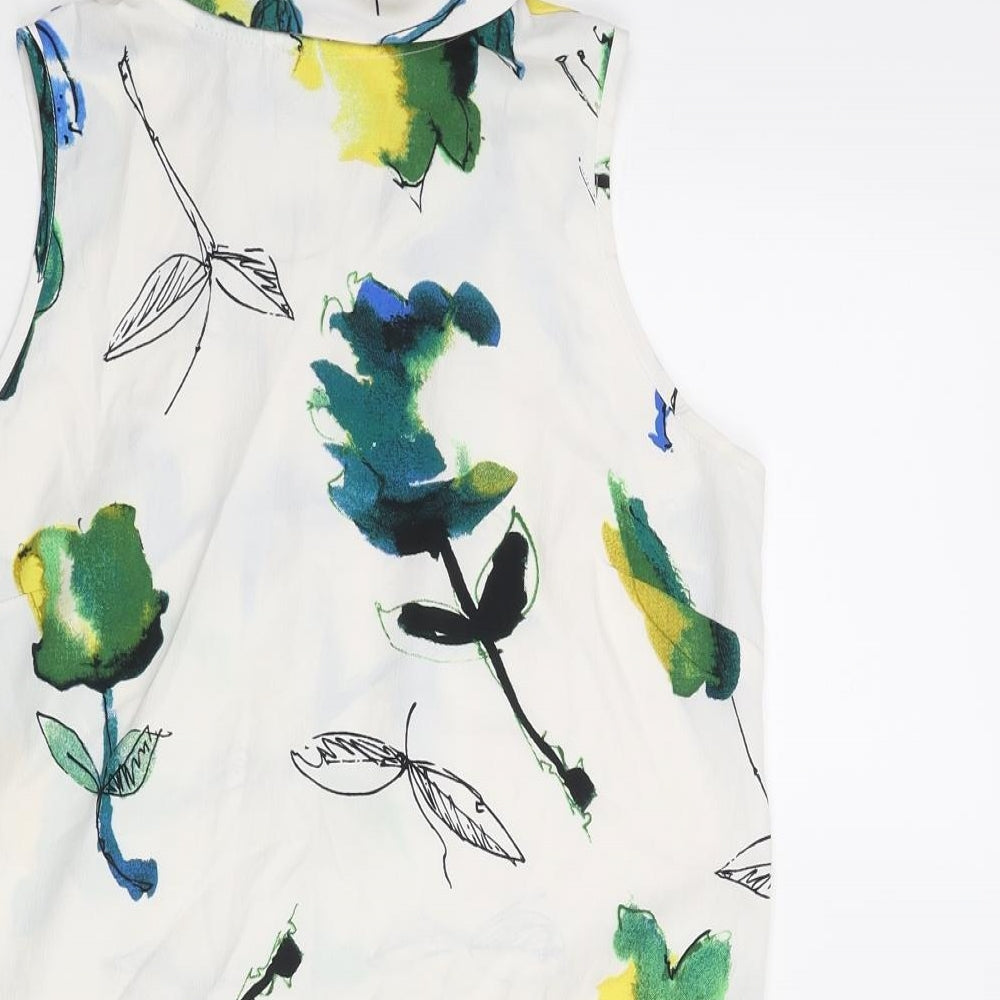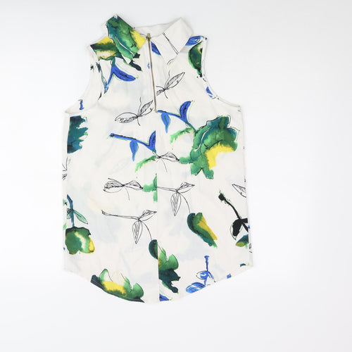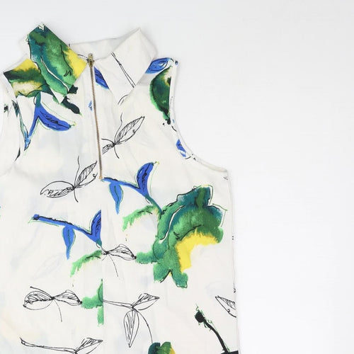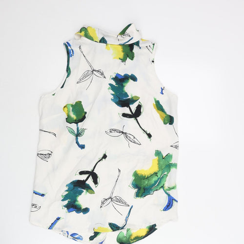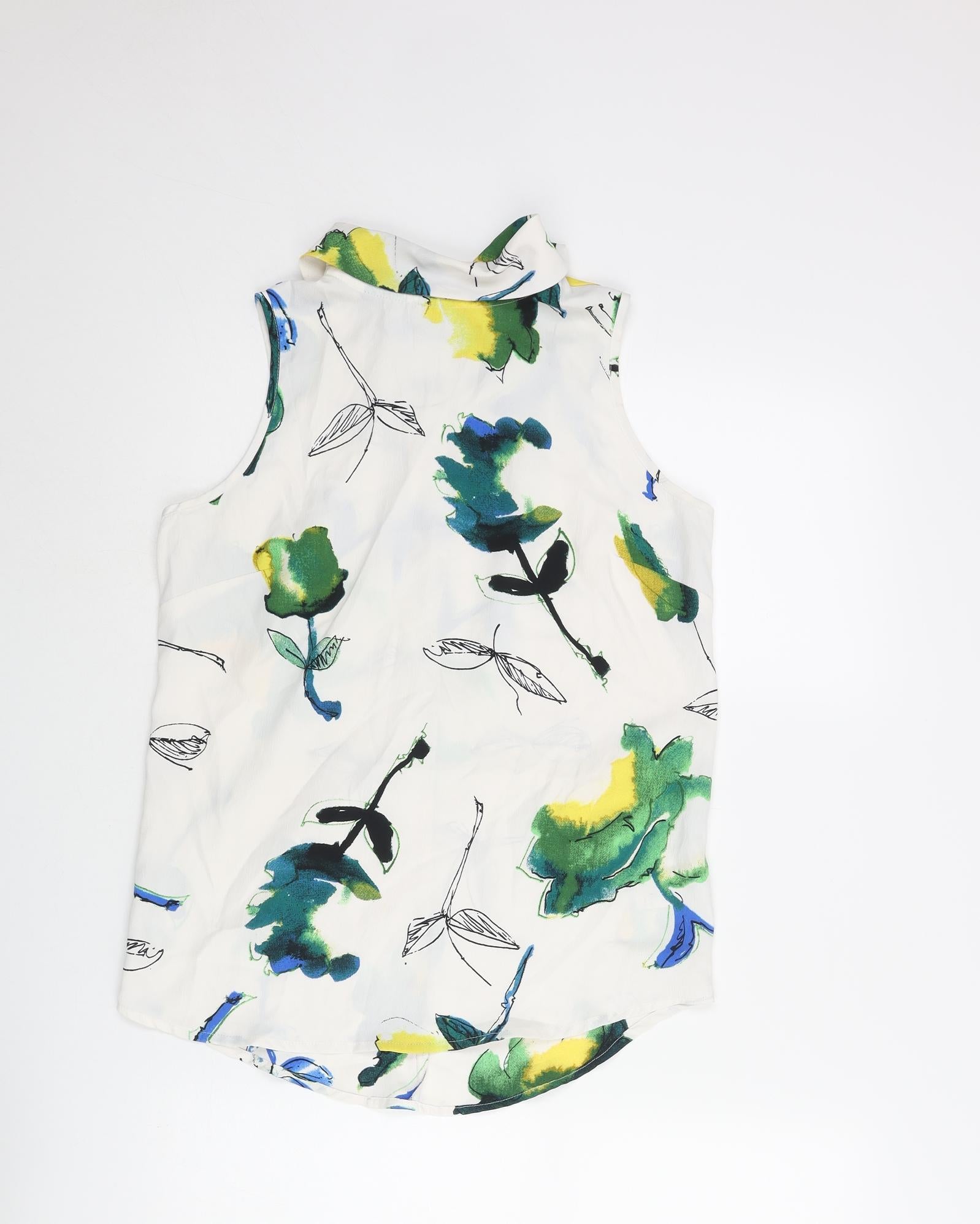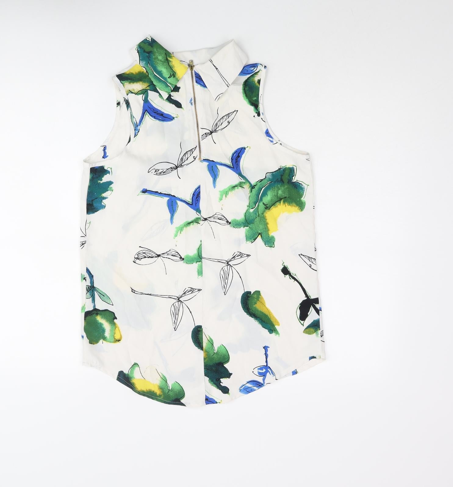 Womens White Floral Polyester Basic Blouse Size 6 Collared
