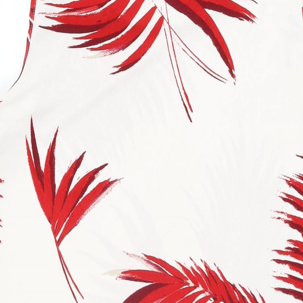 Womens White Geometric Polyester Basic T-Shirt Size 14 Round Neck - Leaf Print