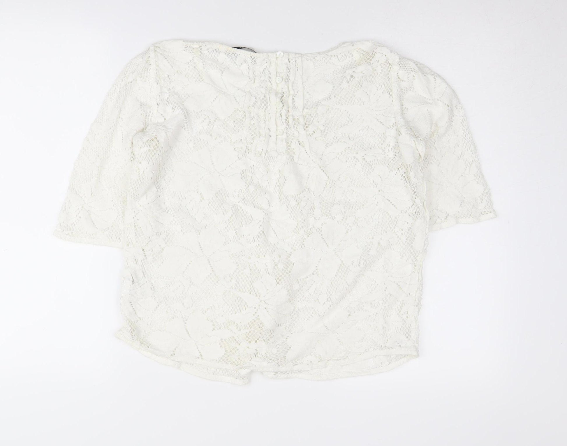 Elevate your casual wardrobe with this elegant women's jumper from Next. In a refreshing white hue, it features an intricate lace fabric that dances gracefully across the jumper, making it perfect for both day and evening wear. Designed with a scoop neckline and comfortable 3/4 sleeves, this jumper combines style and ease, ensuring you look chic and relaxed. The piece is crafted from a blend of 82% Cotton and 18% Nylon, providing a soft, breathable feel with a hint of stretch for added comfort. Ideal for spring and summer, pair it with jeans for a casual outing or dress it up with a skirt for a more refined look. With button accents adding a touch of charm, this regular-fit jumper is both stylish and versatile, ready to become a staple in your wardrobe. In excellent used condition, it remains free from any defects, offering great quality at a fantastic price. Don’t miss out on adding this fashionable piece to your collection today!