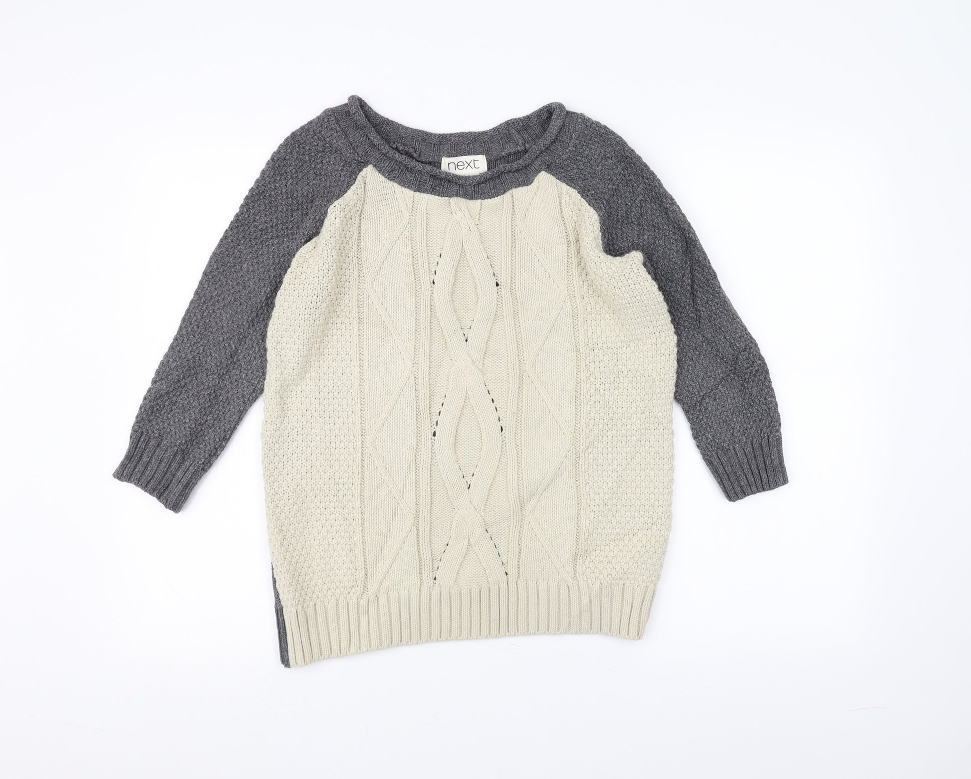 Next Women Beige Cable-Knit Wool Blend Jumper UK 12