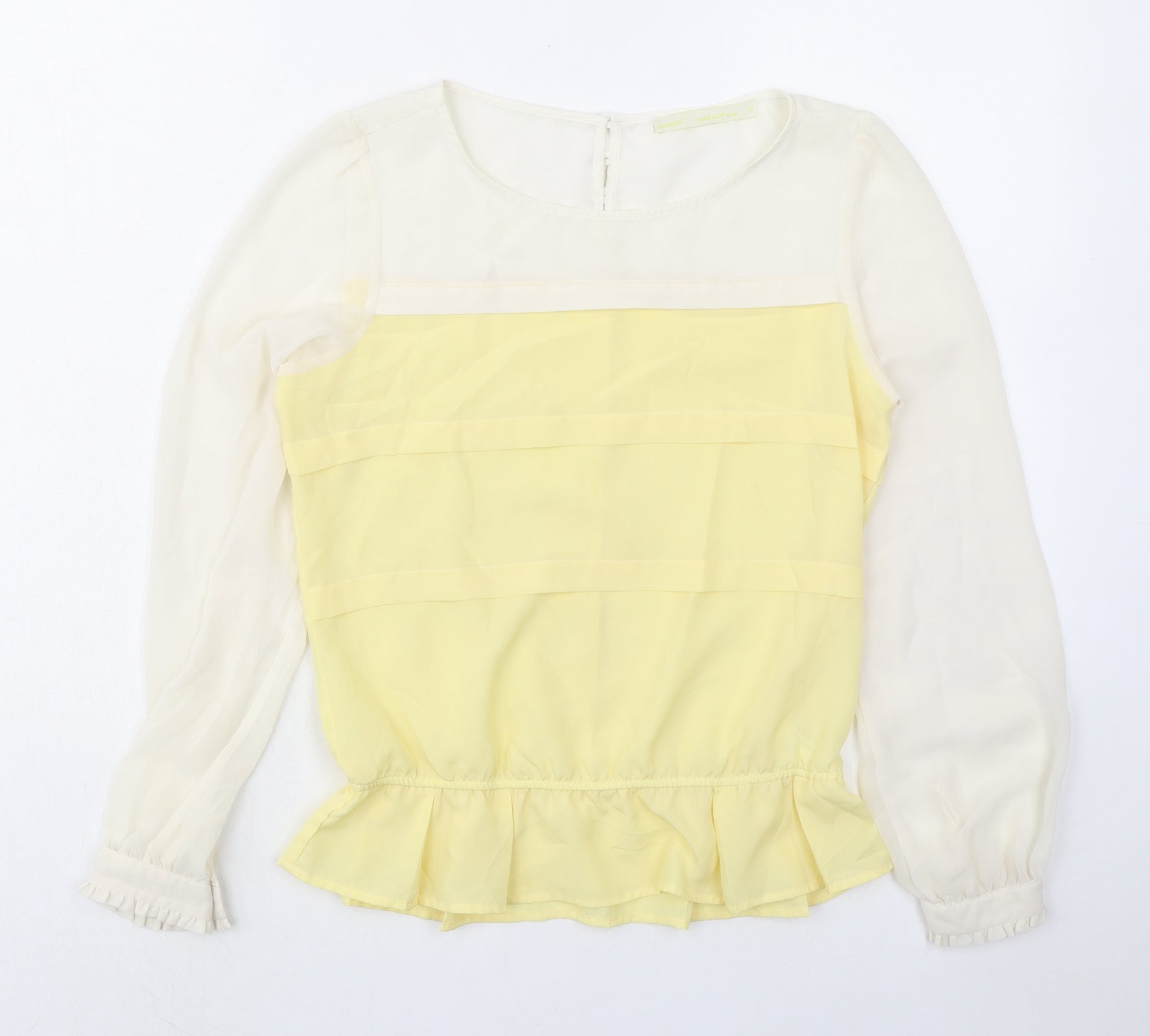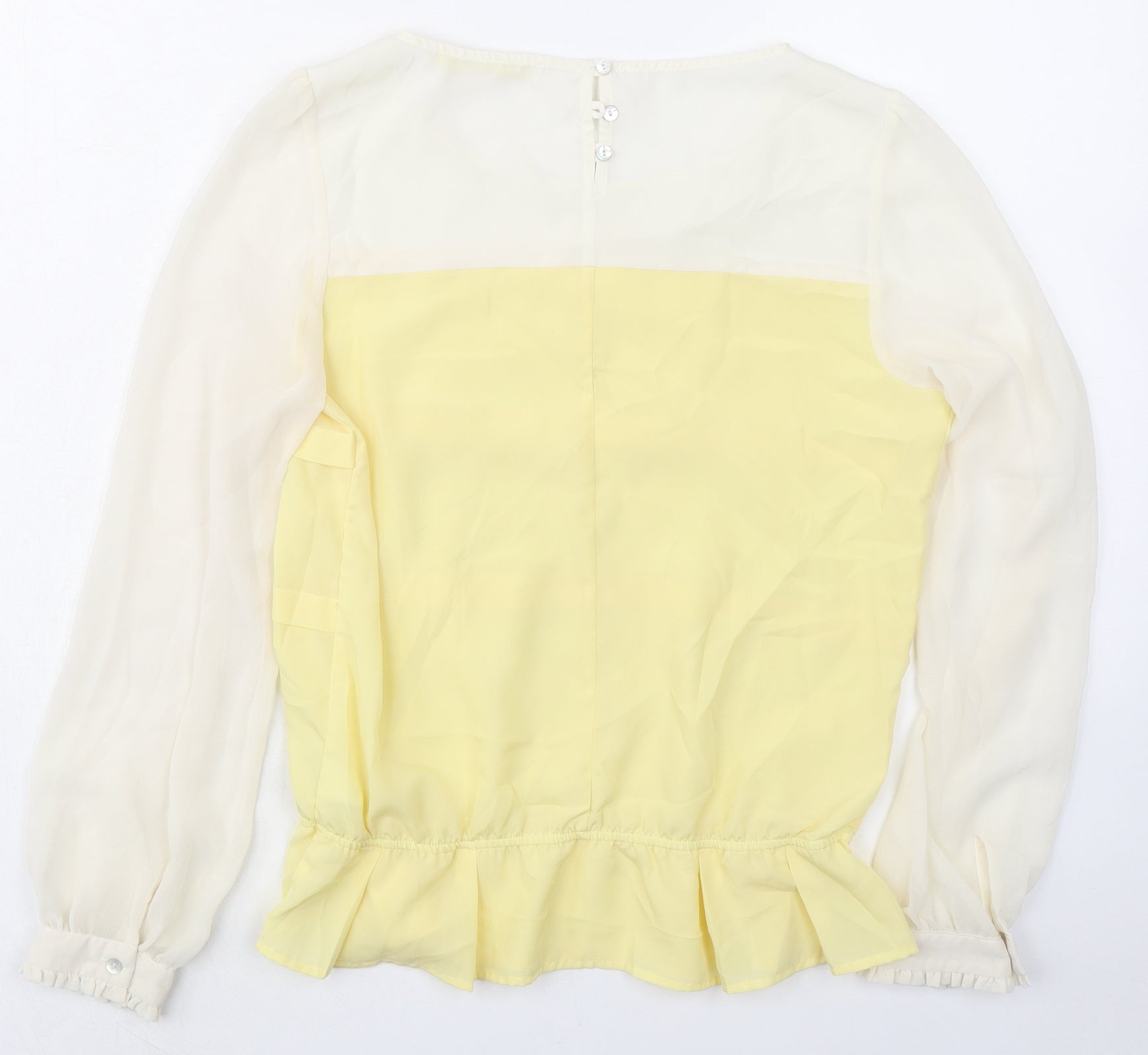 Womens Yellow Colourblock Polyester Basic Blouse Size 10 Boat Neck