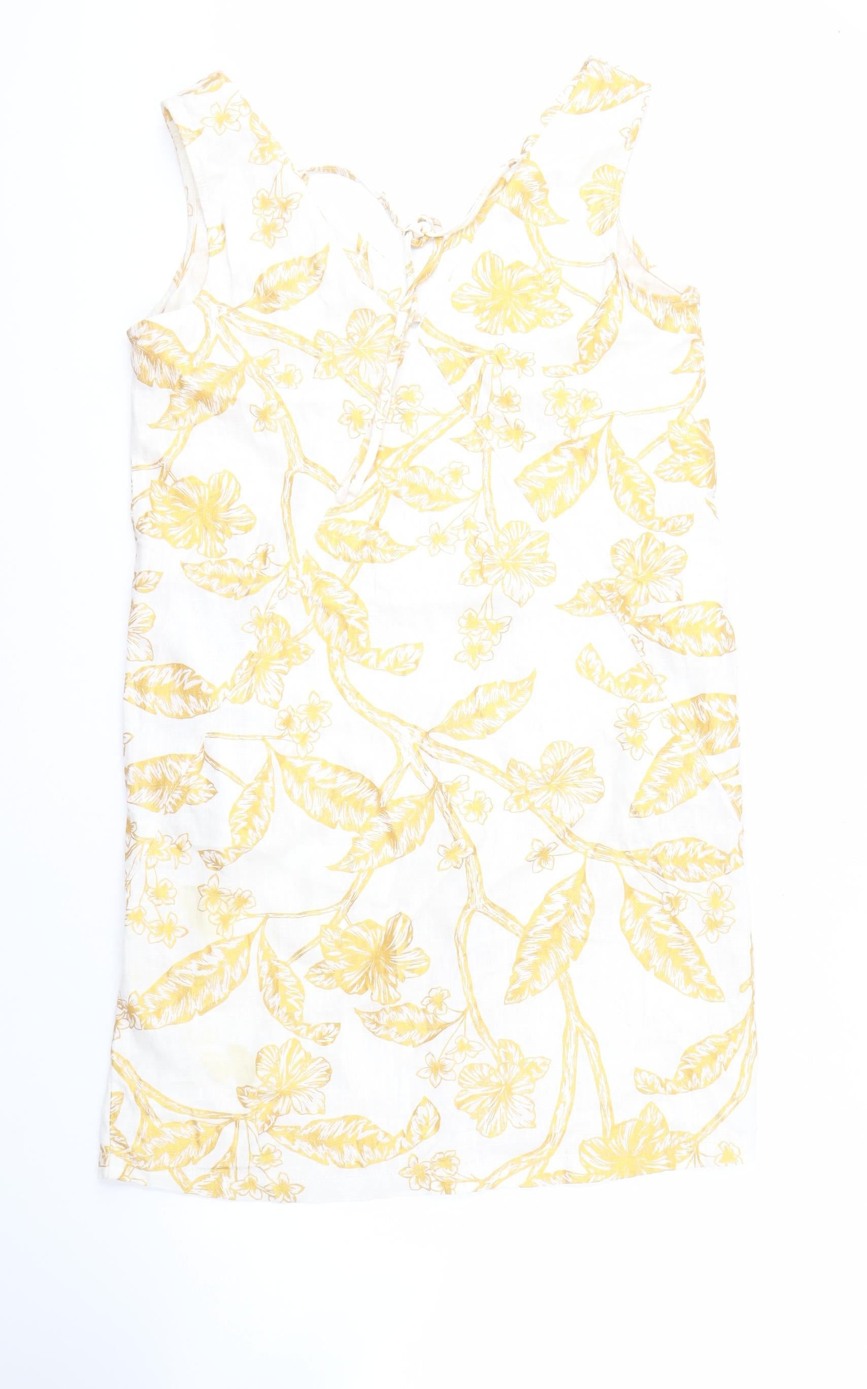 Embrace the warmth of spring and summer with this stunning yellow floral dress from Next, designed to add a splash of sunshine to your wardrobe. Perfect for women who appreciate style and comfort, this dress is crafted from a breathable cotton and linen blend, making it an ideal choice for those warmer days. The sleeveless design offers a relaxed fit, effortlessly combining casual elegance with a touch of bohemian charm. Whether you're heading to a garden party, a casual outing with friends, or simply relaxing on a sunlit afternoon, this dress complements every occasion. The bohemian-inspired floral pattern lends a timeless appeal, resonating with nature's beauty, and adds a playful twist to your everyday style. Pair it with your favorite sandals and a light shawl for an enchanting look that captures the essence of effortless chic. Machine washable for easy care, this dress is a practical yet elegant addition to your fashion collection. Offered at a very reasonable price, this piece invites you to enjoy high-quality fashion without compromising on style or affordability. Add this to your wardrobe today and let your style blossom like a summer garden.