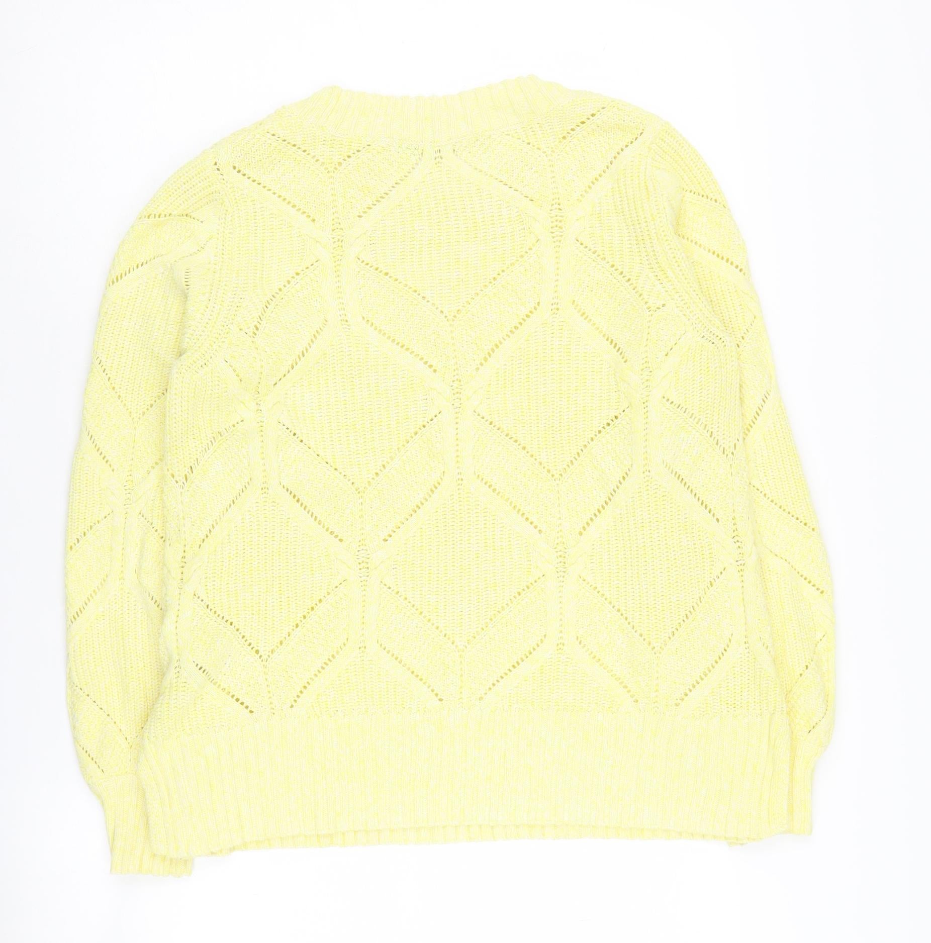 Step into spring with style in this delightful yellow pullover jumper from Next. Crafted for women, this regular-fit jumper in size 12 combines both comfort and elegance. The open-knit design lends a geometric charm, adding a touch of sophistication to your casual wardrobe. Made with a breathable 60% cotton and 40% acrylic blend, this knit ensures softness and durability, ideal for day-long wear.The vibrant yellow hue is perfect for brightening up your attire, making it an excellent addition for the spring and autumn seasons. Its crew neck and long sleeves provide a classic look that can transition seamlessly from day to night. Machine washable and easy to care for, this jumper promises hassle-free maintenance.Pair it with your favourite jeans or skirts for a chic casual appearance. Whether you're heading to the office or enjoying a weekend outing, this Next jumper ensures you stay stylish and comfortable. Don't miss out on adding this versatile piece to your collection. Grab it now at an excellent value!