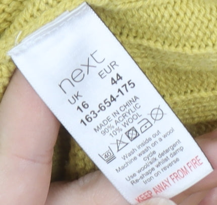 This stylish yellow pullover from Next is a charming addition to any wardrobe. Expertly crafted for women, it features a classic crew neck design and long sleeves, making it perfect for both autumn and winter wear. The jumper is constructed from a cozy knit fabric, blending 90% acrylic with 10% wool for a warm yet lightweight finish that enhances comfort and durability. Designed for casual occasions, this versatile jumper can easily transition from a relaxed day out to a cozy evening in. The regular fit ensures a flattering silhouette, while the rich yellow hue adds a pop of color to any outfit. Whether paired with jeans for a laid-back look or layered over a shirt for extra warmth, this pullover is sure to become a favorite go-to piece. Embrace the cooler seasons with confidence, knowing that this practical and fashionable sweater has got you covered.