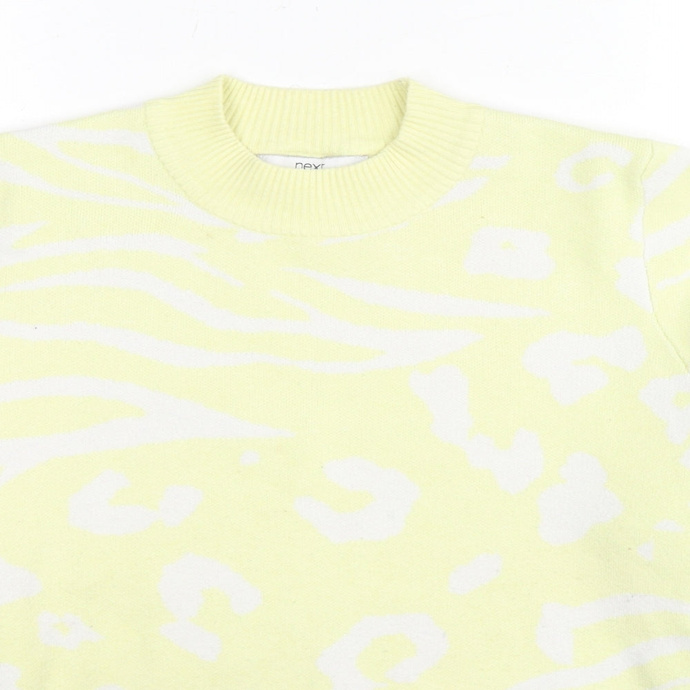 Womens Yellow Round Neck Animal Print Viscose Pullover Jumper Size 14