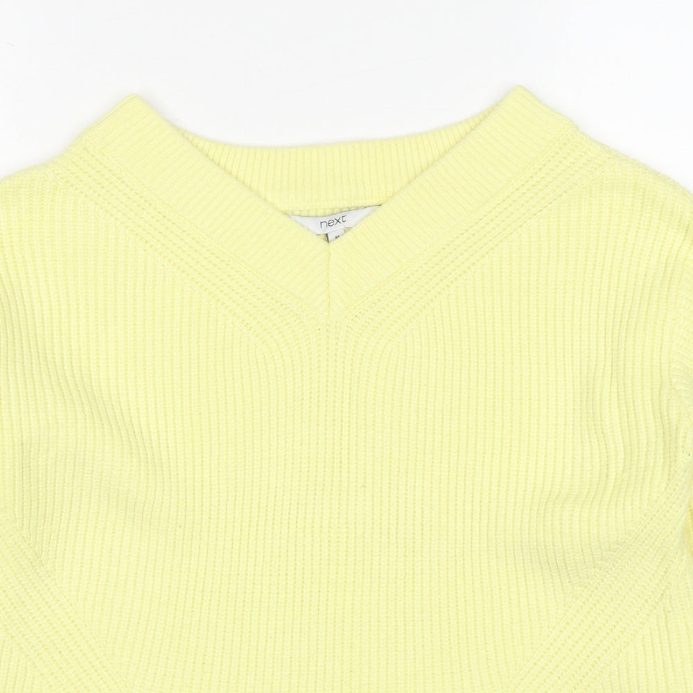 Womens Yellow V-Neck Viscose Pullover Jumper Size M