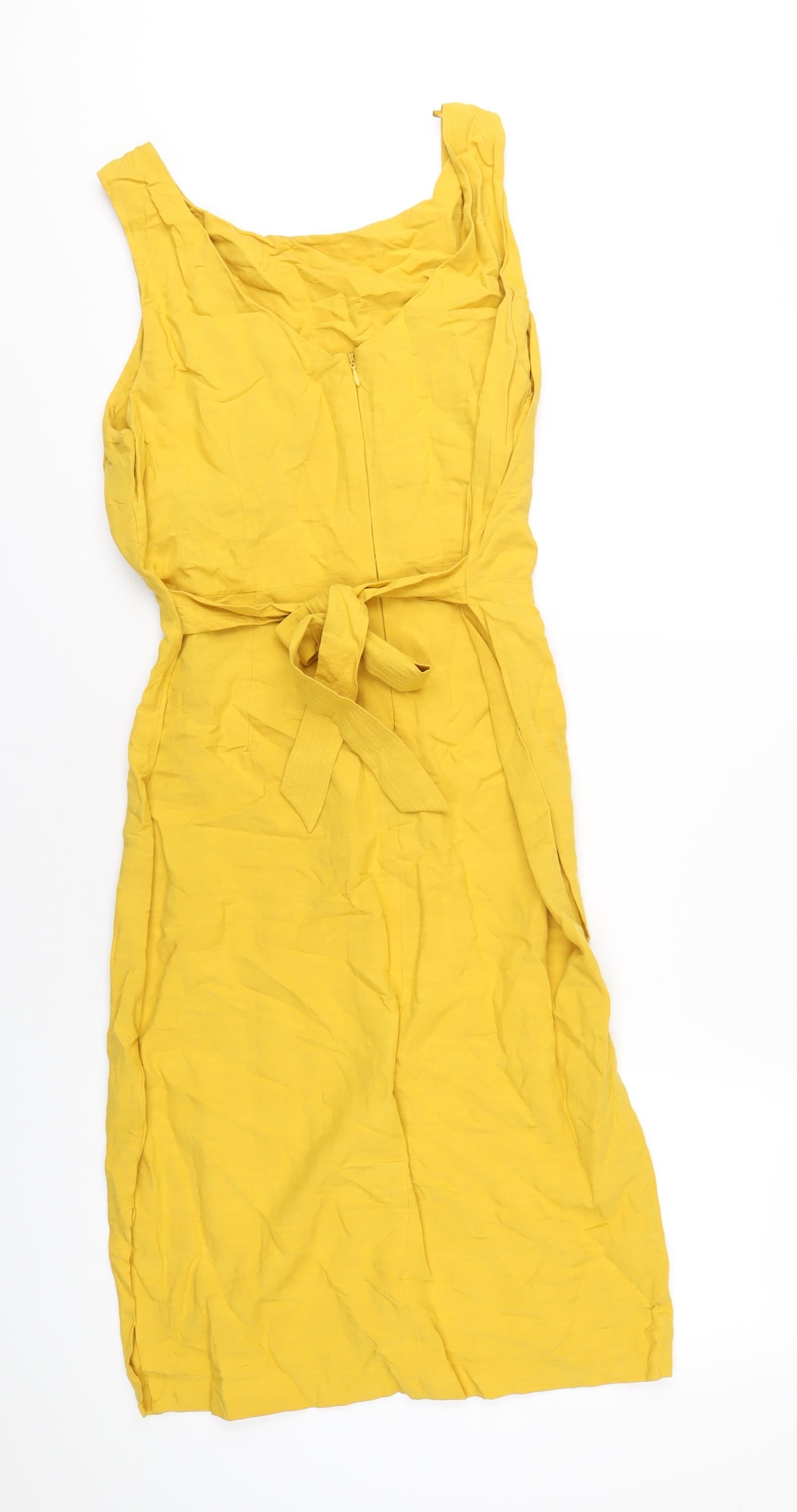 Womens Yellow Viscose A-Line Size 14 Round Neck Zip