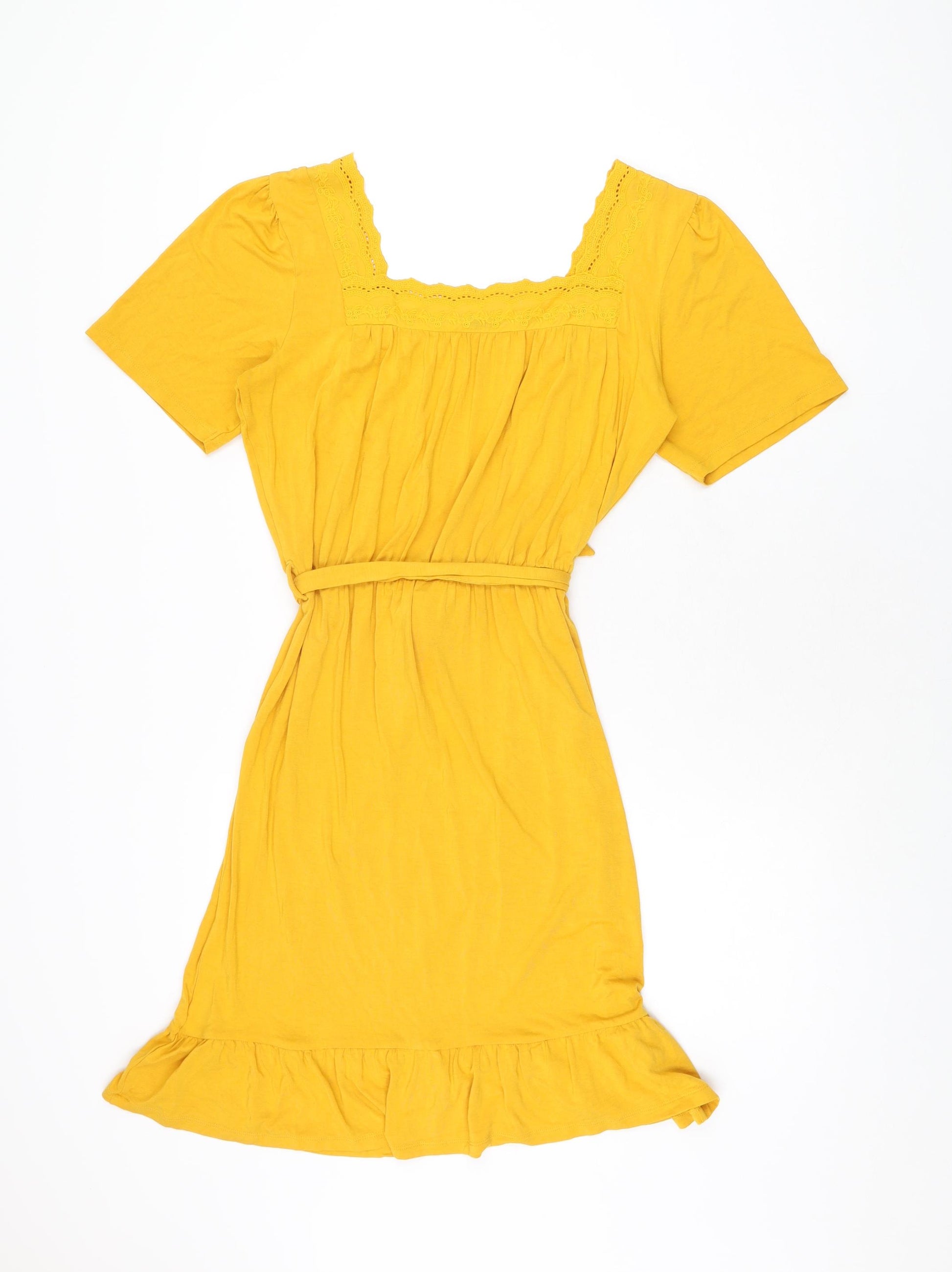 Womens Yellow Viscose Skater Dress Size 8 Square Neck Pullover