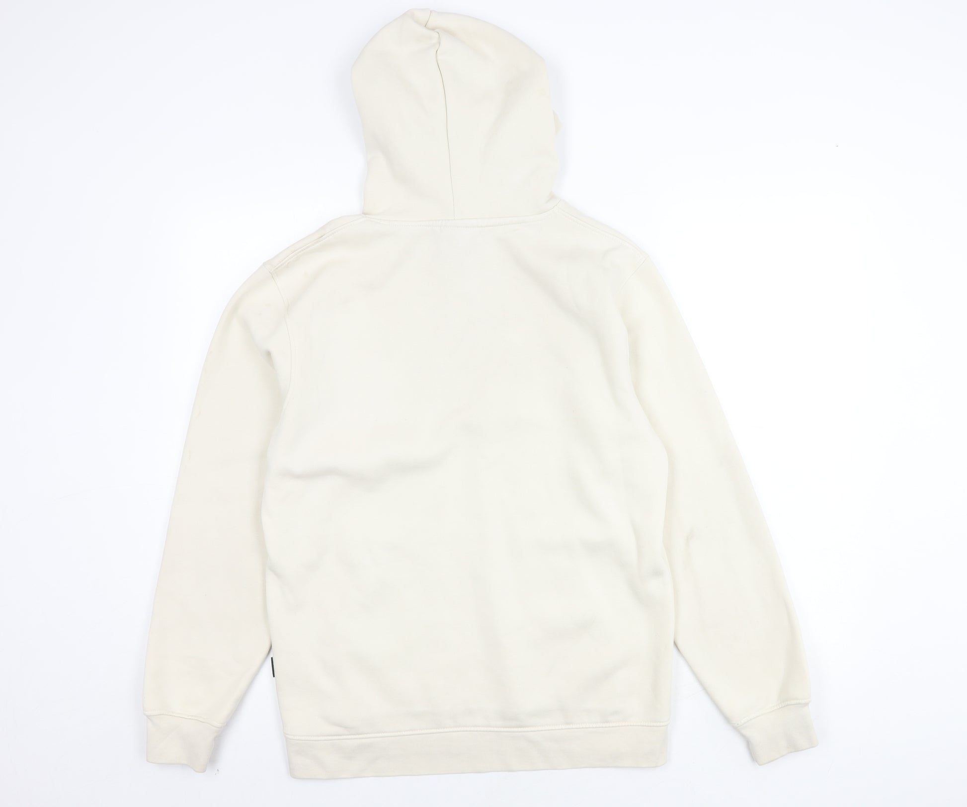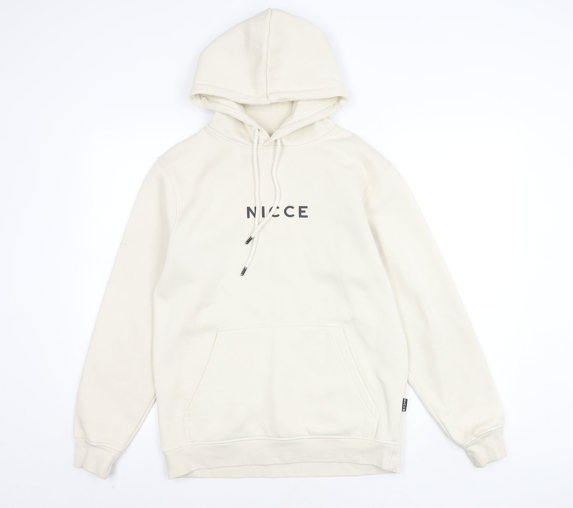 Dive into casual comfort with this NICCE Men's Beige Pullover Hoodie. Perfect for the style-savvy gentleman, this hoodie boasts a soft and plush fleece fabric that delivers warmth through the cooler seasons of autumn and winter. Designed in a classic pullover style, it features a relaxed fit and a stylish crew neck, making it ideal for laid-back outings or casual hangouts.The hoodie is adorned with the iconic NICCE logo across the chest, adding an element of urban chic to your ensemble. Its beige colour provides versatility, allowing easy pairing with various other wardrobe staples. Additionally, the hoodie comes with a practical drawstring closure at the hood and spacious pockets upfront, combining functionality with fashion.Constructed from a blend of 65% cotton and 35% polyester, this hoodie is geared towards resilience and comfort, perfect for those everyday adventures and moments of leisure. Its long sleeves offer added coverage, maximizing coziness, while the breathable material ensures all-day comfort.Despite showing minor marks on the fabric, the hoodie is in very good condition, promising lasting wearability and style. Whether worn for a brisk walk in the city or an informal gathering with friends, this hoodie is a notable addition to any casual collection.