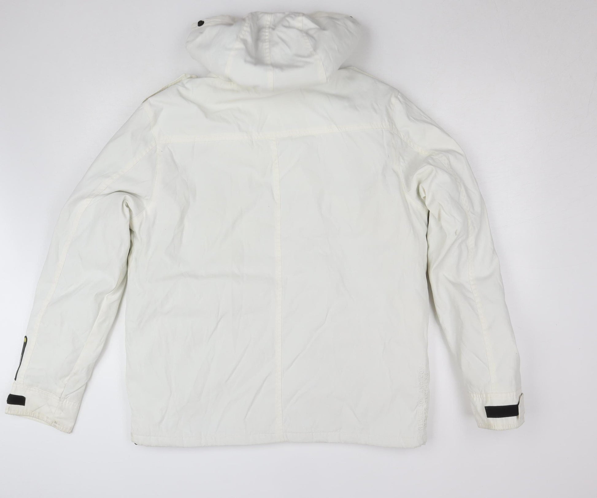 Step out in style and comfort with this Nickelson women’s hooded parka jacket in white, offering a sleek yet practical layer for cooler weather. Crafted from a durable blend of 72% nylon and 28% cotton, the outer shell provides weather resistance while maintaining a soft feel. The fully lined interior, composed of polyester and cotton, ensures warmth and comfort without unnecessary bulk, making it a great choice for transitional seasons or colder days. Designed with functionality in mind, this mid-length jacket features a sturdy full zip closure complemented by button fastenings for added protection against the wind. Multiple front flap pockets provide both utility and a stylish, structured look, perfect for keeping your essentials close at hand. The adjustable cuffs and reinforced seams enhance the jacket’s wearability, giving you a tailored fit that feels both comfortable and secure. The drawstring hood adds extra coverage and a touch of casual chic, while the subtle black trims create contrast against the bright white body, maintaining a modern yet timeless aesthetic. Suitable for casual outings, travel, or everyday wear, this Nickelson parka embodies contemporary design and practical versatility. In very good pre-owned condition with minimal signs of wear such as faint marks, this piece retains its stylish appeal. Whether worn with jeans and trainers for a relaxed look or paired with boots for a more polished outfit, this white Nickelson jacket ensures you’ll stay warm and fashionable wherever you go. A must-have layering staple for any wardrobe that combines comfort, functionality, and effortless modern style.