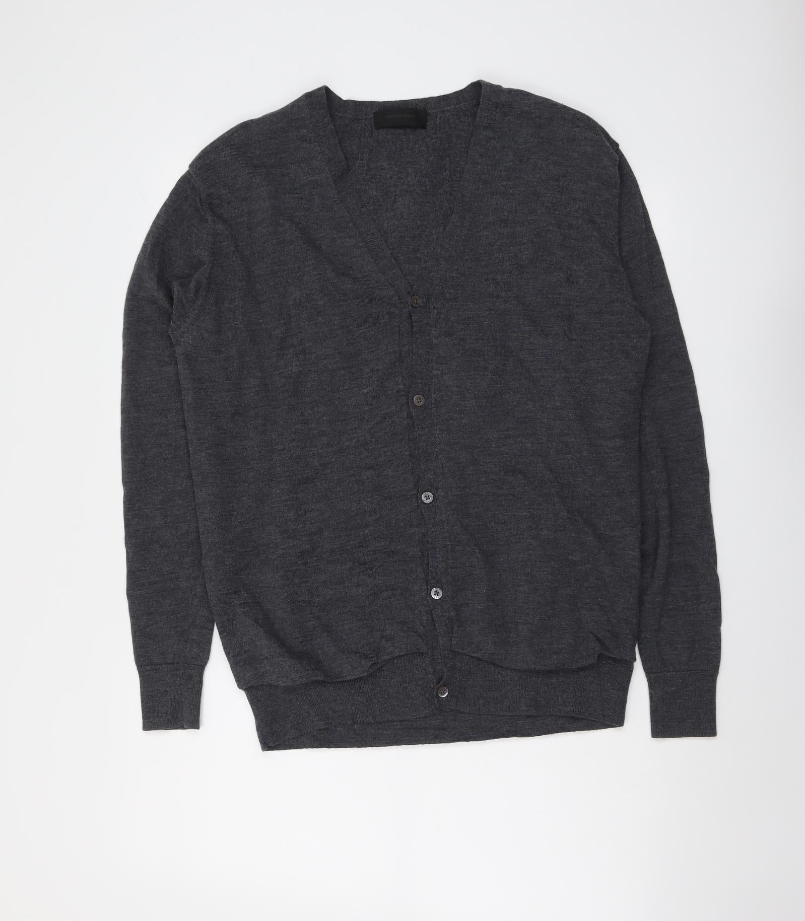 Womens Grey V-Neck Wool Cardigan Jumper Size XL