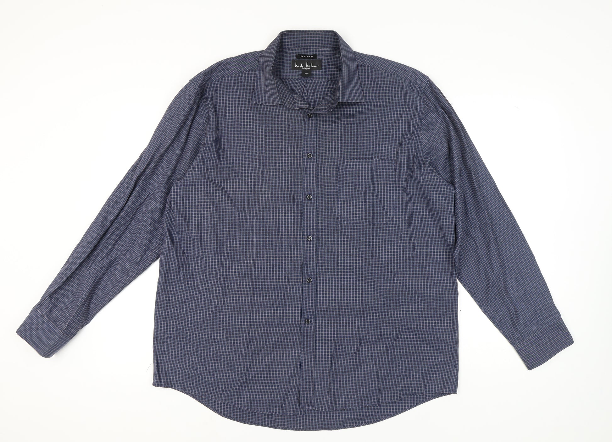 Step up your wardrobe with this Nicole Miller men's shirt, featuring a classic blue check pattern and long sleeves. Crafted for both style and comfort, this button-up shirt offers a practical and stylish choice for various occasions. The collared neckline and easy-care feature make it a convenient option for busy days. Whether you're heading to work or a casual outing, this versatile piece is designed to enhance your look effortlessly. The 17.5 regular size accommodates a comfortable fit for most, while the absence of any visible defects adds to its appeal. Pair it with your favourite jeans or chinos for a polished look. Elevate your style with this timeless shirt.