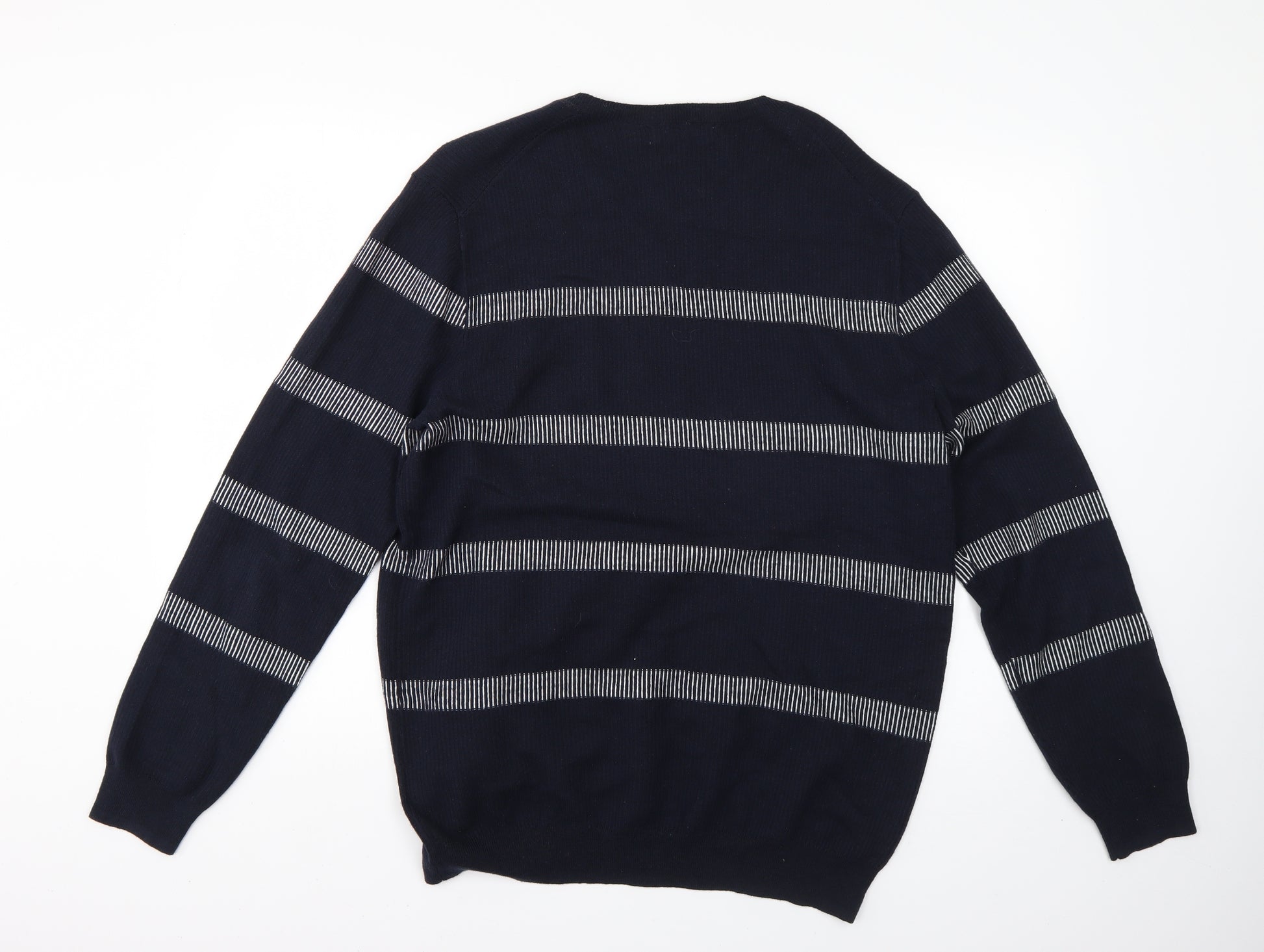 Regular price£14.25£1425Regular priceUnit price / perSale price £14.25 GBPZara Man Blue Striped Cotton V-Neck Jumper XL Regular Fit