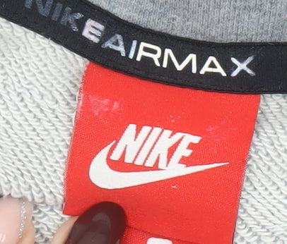 Upgrade your casual wardrobe with this stylish Nike Air Max men's full zip hoodie in a versatile grey colourway. Designed for comfort and function, this hoodie is crafted from a soft jersey knit blend of 80% cotton and 20% polyester, offering a snug yet breathable fit ideal for cooler seasons. The classic full-zip front makes it easy to wear over t-shirts or activewear, while the adjustable drawstring hood provides added coverage for outdoor workouts or casual outings. Featuring Nike’s signature Air Max logo on the chest and sleeve, this hoodie reflects sporty style with a modern edge. The kangaroo-style pockets add a practical touch, keeping your essentials close at hand, while the ribbed cuffs and hem ensure the garment keeps its shape. Perfect for layering during autumn, spring, and winter, this hoodie defends against the chill without feeling too bulky. Designed with performance and everyday wear in mind, this hoodie is great for gym sessions, football practice, running, or simply lounging at home. The soft interior delivers exceptional comfort during all-day wear. Its machine washable fabric provides easy care and durability. In very good pre-owned condition with a small mark near the zip as shown, this hoodie still maintains an excellent overall appearance and structure. It’s an ideal wardrobe addition for men who appreciate quality sportswear and sleek design. Whether you’re on the go, training, or relaxing, the Nike Air Max full zip hoodie offers the perfect mix of performance and streetwear appeal.