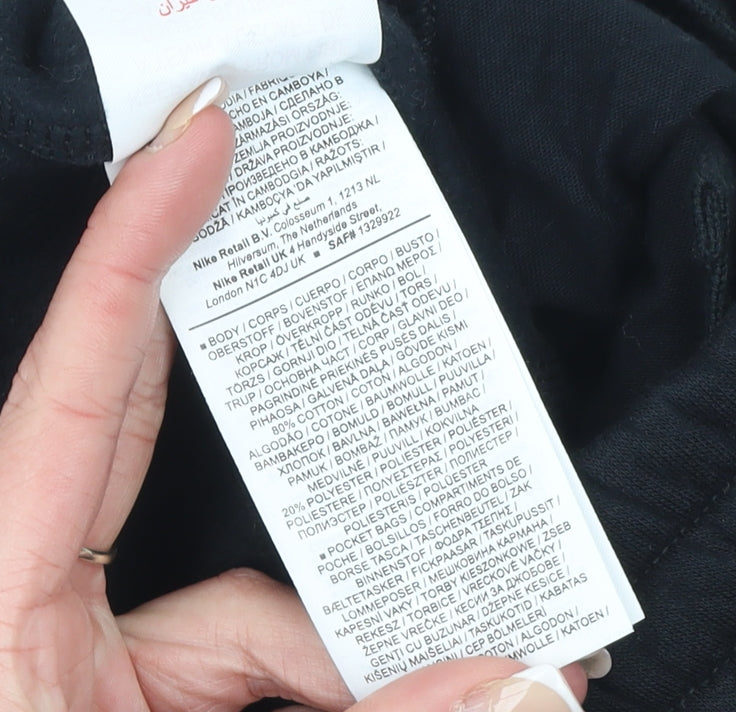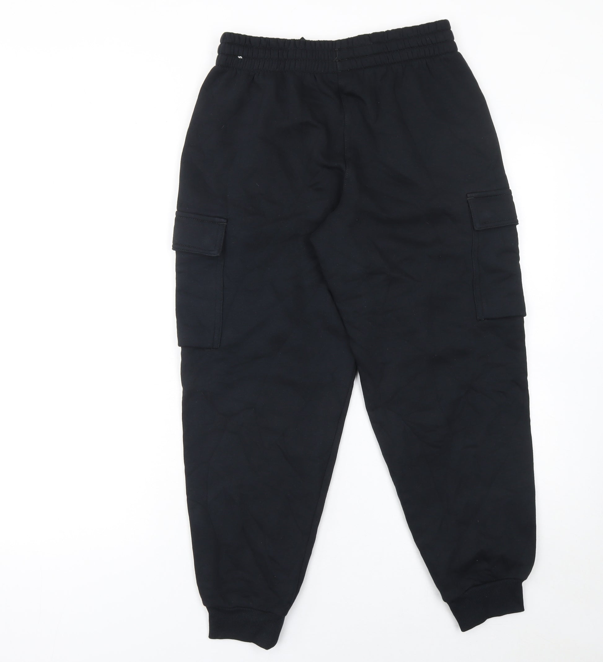 Keep your young one comfortable and stylish with these Nike Boys Black Cargo Fleece Jogger Trousers, designed for everyday wear and active comfort. Crafted from a high-quality cotton and polyester blend, the trousers combine softness with durability, making them ideal for school, play or relaxed weekend activities. The black colourway gives a sleek, sporty look that pairs effortlessly with hoodies, tees, or jumpers. Featuring an elasticated waistband for easy pull-on convenience and an adjustable, comfortable fit, these joggers are as practical as they are stylish.The design includes multiple spacious pockets, including functional cargo pockets on each leg, perfect for storing small essentials. The Nike swoosh logo adds a classic, athletic touch to the understated design. Made with breathable fleece fabric, the trousers provide warmth in cooler months, while maintaining easy movement and flexibility throughout the day. Their regular fit ensures a comfortable shape that will suit multiple body types without restriction.Ideal for autumn and winter wear, these Nike Cargo Trousers can handle daily activities whether your child is heading to school, playing outdoors, or travelling. The fleece construction ensures durability and comfort, while the easy-care, machine washable fabric makes maintenance effortless for busy parents. Perfect for active kids who want to stay comfortable without compromising on sporty style.These trousers are in excellent condition, showing only light signs of previous wear and no visible flaws. They do not include original retail tags, but remain in top shape, ready for more adventures. Offering both practicality and fashion-forward style, these Nike Boys Black Cargo Joggers are a must-have wardrobe staple that deliver warmth, utility and iconic branding for a timeless sporty edge. A quality and versatile piece that reflects Nike’s performance-driven design philosophy – perfect for everyday activewear or laid-back casual ensembles.
