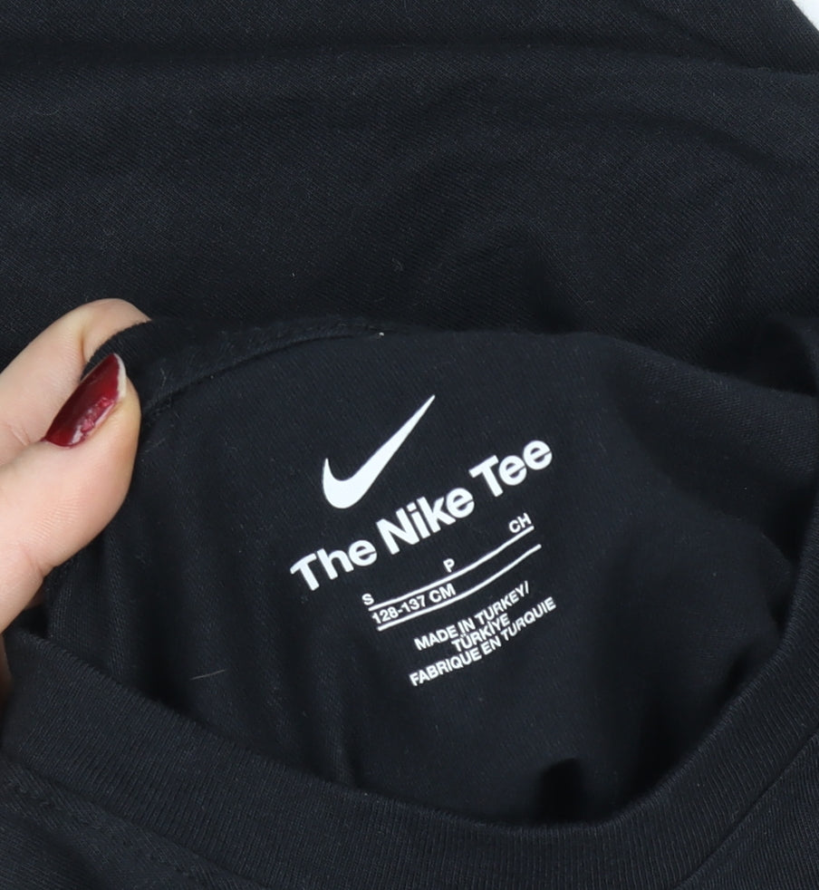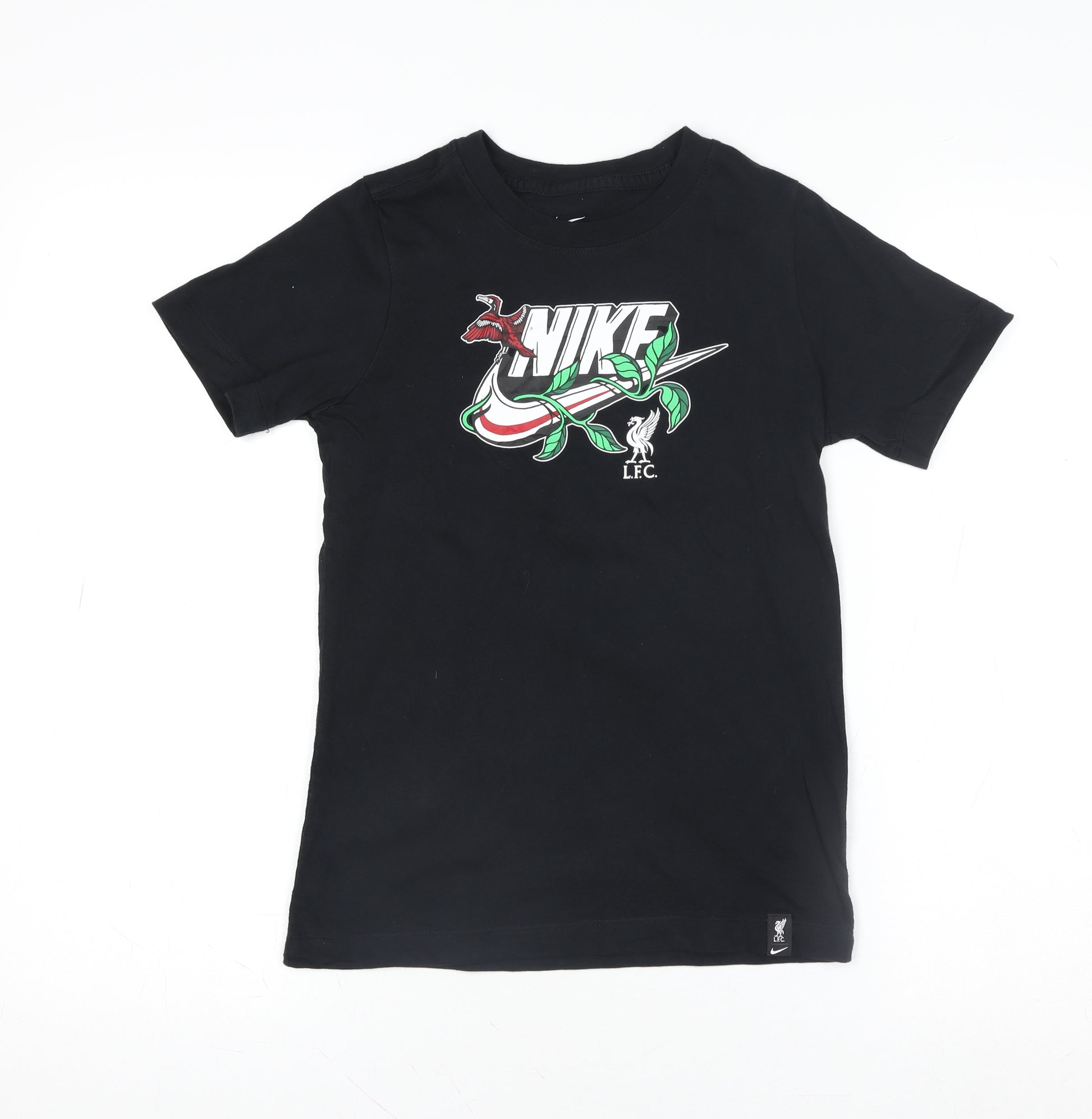 This Nike Boys Black Liverpool FC T-Shirt is a stylish and sporty wardrobe essential for any young football fan. Crafted from 100% cotton, this soft jersey tee promises lasting comfort and breathability, making it ideal for everyday wear at school, play, or casual outings. The crew neck design and short sleeves provide a relaxed fit that allows easy movement, while the medium-weight cotton fabric ensures durability and comfort throughout the day. Featuring Nike’s signature swoosh logo intertwined with the iconic Liverpool Football Club emblem, this tee celebrates fandom in a modern, energetic design that stands out. Its bold black colour provides versatility, easily pairing with jeans, shorts, or joggers, while the graphic print adds a fun and athletic touch befitting any young supporter of the Reds. With a pullover closure for ease and a breathable fabric finish, this shirt is perfect for casual outings, sports activities, or showing team pride on match day. Designed with quality stitching and Nike’s signature craftsmanship, you can expect lasting wear wash after wash. In excellent pre-owned condition—with no visible marks, holes, or discolouration—this T-shirt offers exceptional value for those looking to combine sports enthusiasm with fashionable comfort. Machine washable for practicality and easy care, it’s ideal for daily wear. Suitable for spring, summer, and autumn, and ideal for layering under hoodies or jackets during cooler days, this versatile black Liverpool FC T-shirt brings together iconic Nike style with football pride. Whether heading to school, the park, or the stadium, this tee is sure to become a go-to favourite in any young fan’s collection.