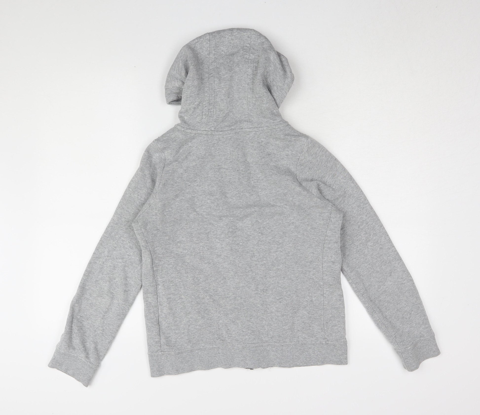 Elevate your child's casual wardrobe with this classic Nike boys' hooded jacket. Available in a versatile grey colour, this jacket is perfect for autumn and spring outings. Designed from a blend of soft cotton, viscose, and polyester, it offers a comfortable and breathable fit. The jacket features a full zip closure, a functional hood, and handy pockets, making it ideal for both sporty activities and everyday wear. Accented with the iconic Nike logo and a sporty theme, this jacket resonates with style and functionality. Whether your child is heading out for a run, gym class, or a casual day out, this jacket is a perfect choice. Machine washable for easy care, it ensures a hassle-free cleaning experience. Although missing the original sales tags, this jacket remains in excellent condition, ready to be worn and admired. Add this essential piece to your child's wardrobe for a touch of classic Nike flair.