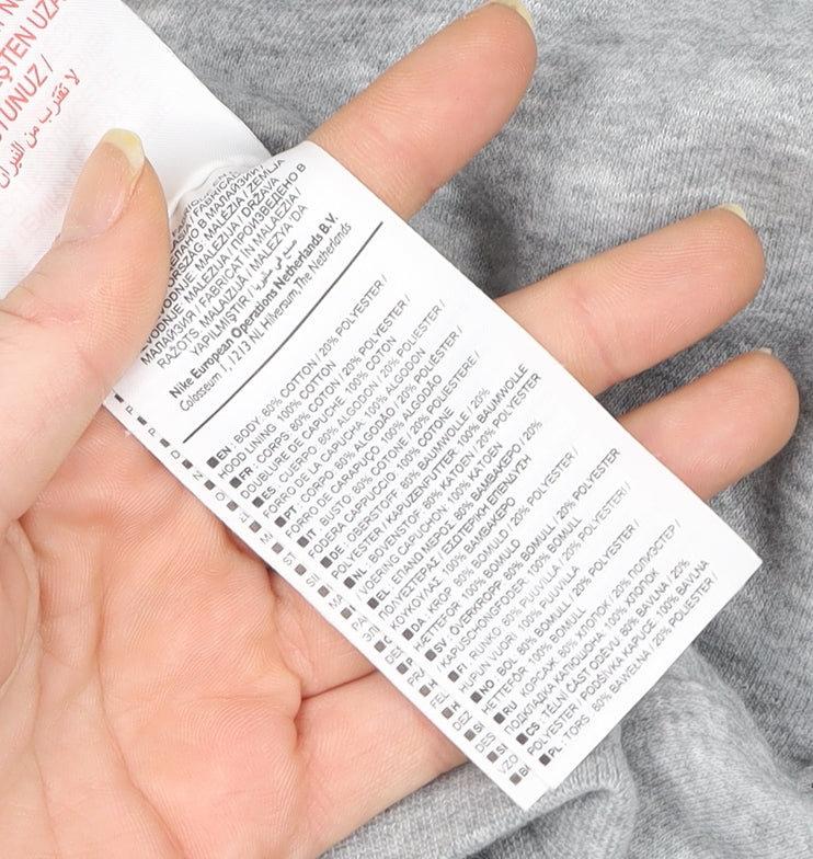 Keep your young one snug, sporty, and stylish with this Nike Boys Grey Pullover Hoodie, perfect for layering through the seasons. Designed in a soft grey hue, this versatile hoodie seamlessly blends everyday comfort with sporty appeal. Made from a cosy cotton blend (80% cotton and 20% polyester), it offers a smooth, breathable fit with the perfect balance of warmth and durability, ideal for school days, casual outings, or chilly outdoor activities. The hoodie features Nike’s classic Swoosh logo embroidered on the chest, adding that unmistakable mark of quality and sporty heritage. With its pullover design and spacious front kangaroo pocket, it’s practical and easy to wear, whether layered over a t-shirt or under a jacket. The ribbed cuffs and hem ensure a snug fit while keeping out the chill, making it suitable for autumn, spring, and winter wear. Lightweight yet insulating, it delivers the distinctive performance expected from Nike athletic wear. This grey hoodie has a regular fit that provides freedom of movement, ensuring your active youngster stays comfortable whether on the playground, at training, or relaxing at home. The hood adds extra coverage from the wind, and the soft knit interior makes it an instant favourite for all-day wear. Perfectly suited to boys aged 10–12 years, with machine washable care for easy maintenance. Combining practicality, sporty energy, and timeless Nike style, this hoodie is a wardrobe essential for any young athlete. Pair it with joggers or jeans for a comfortable, casual look. Excellent pre-loved condition – grab it for just £17.50 and add a touch of iconic sportswear to your child’s collection today.