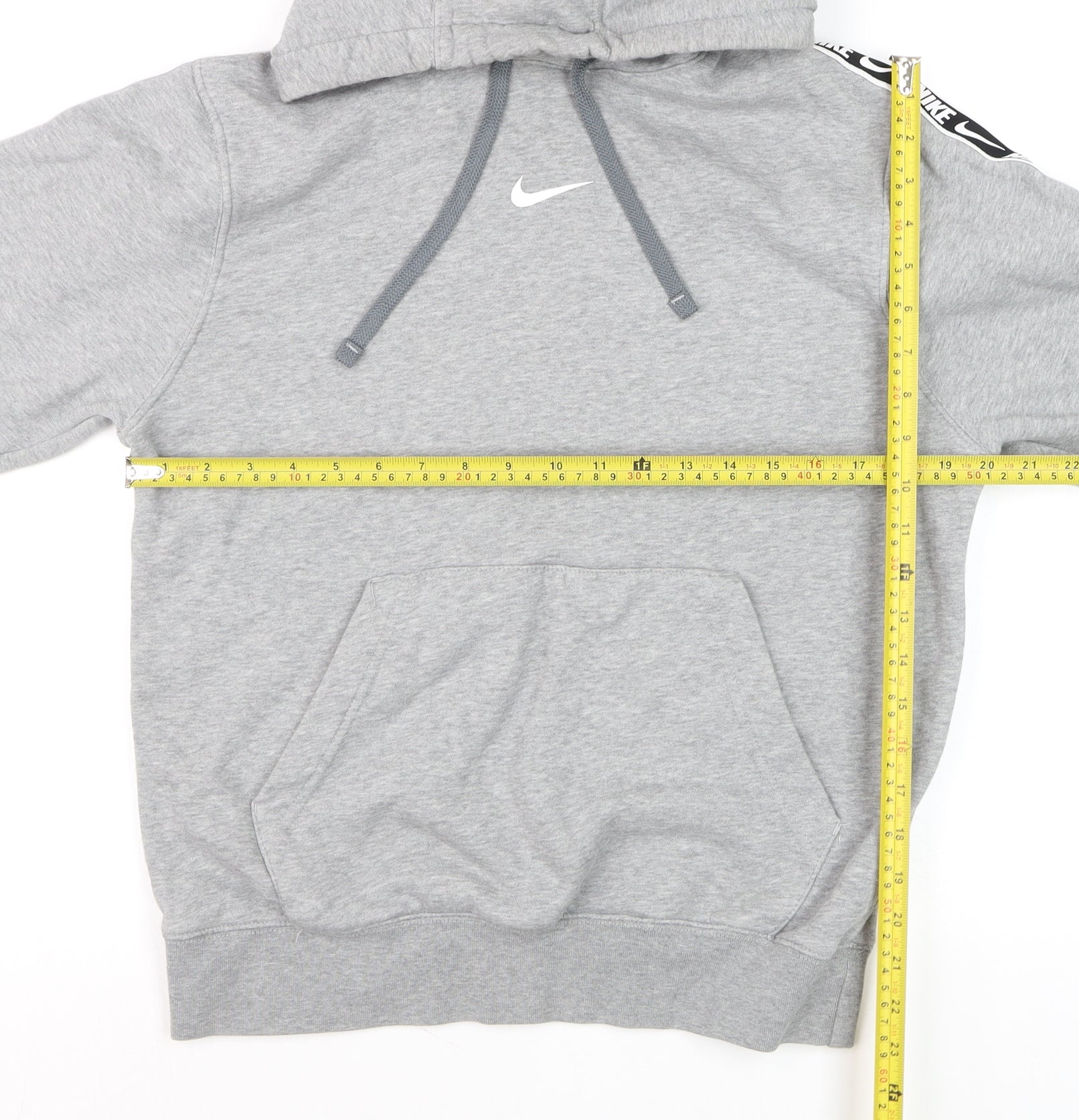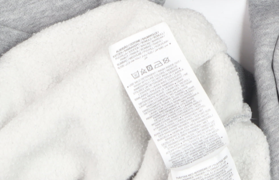 Keep your young one comfortable and stylish with this classic grey Nike boys’ hoodie. Designed with a soft cotton blend fabric, this pullover hoodie provides a perfect balance of warmth and breathability, making it ideal for casual wear, school days, or outdoor activities. The hoodie features Nike’s signature logo embroidered in white on the chest and printed branding along the sleeves, adding a sporty and modern touch. Its kangaroo pocket offers practical convenience, letting kids keep their hands warm or store small essentials. The adjustable drawstring hood provides a snug fit and extra comfort on cooler days. Made from durable, easy-care material, it is machine washable for effortless maintenance. The ribbed cuffs and hem ensure this hoodie retains its shape while offering a cosy fit. The fleece-lined interior delivers added insulation without compromising on softness, perfect for layering throughout autumn and winter. With Nike’s trusted quality and classic styling, this hoodie remains a timeless choice for any boy’s everyday wardrobe. Whether paired with joggers or jeans, it guarantees comfort while showcasing a clean, sporty vibe. Ideal for active youngsters who want both functionality and fashion, this grey pullover Nike hoodie is a wardrobe essential that will stand up to daily wear while keeping them looking sharp. In excellent pre-loved condition, it shows no visible flaws or damage, making it a great find for the price.