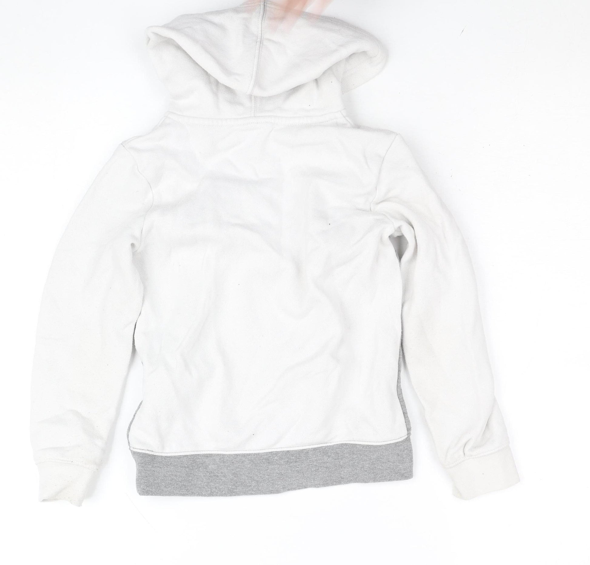 Boys White Grey Full Zip Hoodie 6-7 Years Cotton Blend Fleece