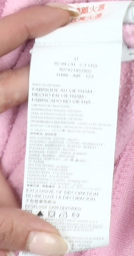 Girls Pink Pullover Hoodie 2-3 Years Logo Fleece Sweatshirt