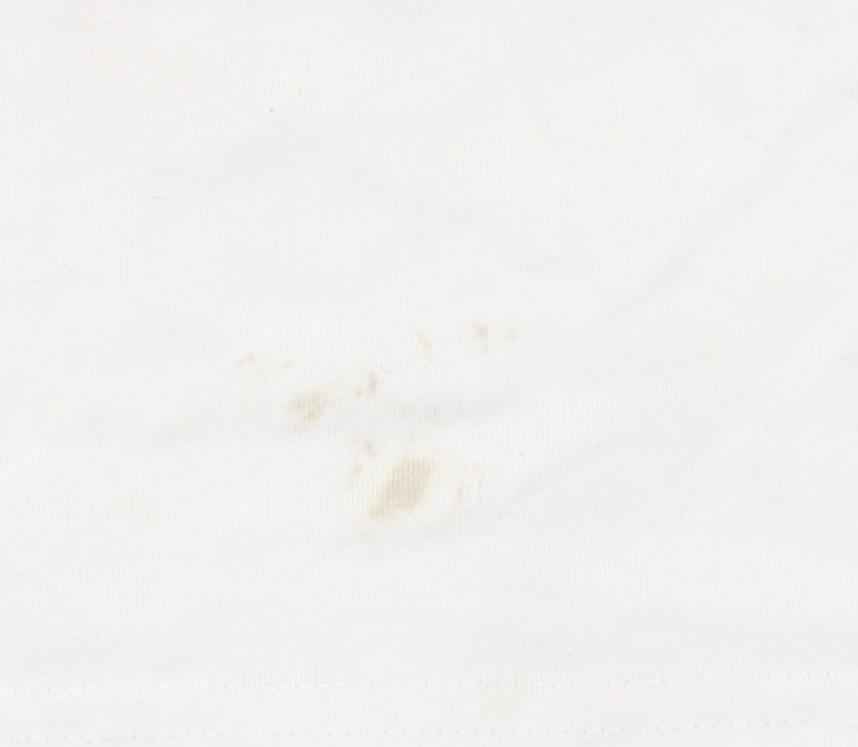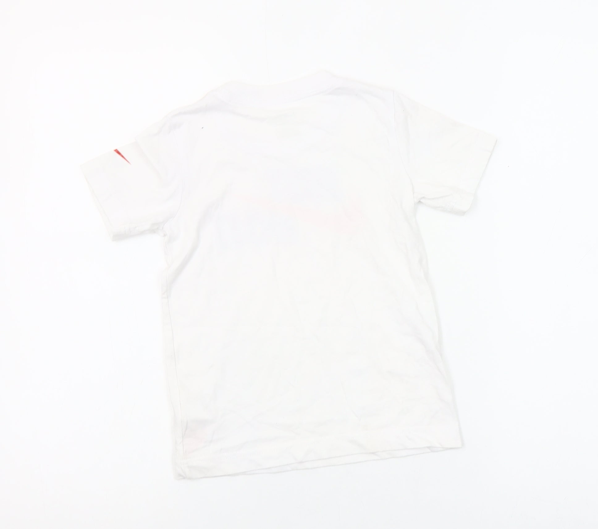 Give your little one a sporty edge with this popular Nike Girls White 'Just Do It' T-Shirt, perfect for everyday wear or active play. Designed for girls aged 5-6 years, this comfortable short sleeve tee is made from a soft cotton and polyester blend that ensures both breathability and durability. The classic crew neck cut provides all-day comfort and freedom of movement, making it ideal for sports, school activities, and casual outings. This lightweight white T-shirt features Nike’s famous red swoosh and bold ‘Just Do It’ slogan in navy print across the chest, paired with an additional swoosh logo on the sleeve, giving it an unmistakable athletic style. Crafted in quality jersey fabric, it offers a regular, easy fit that suits active kids who love to move. The material’s breathable blend makes it great for warmer months or as a layering piece during spring and autumn.The T-shirt remains in good pre-owned condition, showing slight staining at the lower front and light wrinkling consistent with normal use, but no holes or structural damage. It’s fully machine washable, meaning it’s easy to keep clean and ready for everyday adventures.Ideal for young Nike fans, this fun and sporty top pairs effortlessly with jeans, shorts or joggers, making it an essential addition to any active kid’s wardrobe. With its iconic design and versatile style, this Nike Girls 'Just Do It' tee will keep her looking cool and feeling confident wherever she goes.