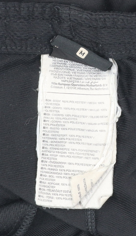 Stay comfortable and perform at your best with these Nike men’s Dri-FIT activewear trousers in a sleek black design. Crafted from 100% polyester, they are built with Nike’s renowned Dri-FIT technology to wick moisture away from the skin, keeping you cool and dry during workouts, training sessions or casual wear. Designed for versatility, these track pants feature a tapered leg for a modern, athletic look while allowing ease of movement. The lightweight woven fabric feels soft yet durable, making them suitable for running, football, gym sessions, or general activewear use all year round.The trousers include a supportive elastic waistband with a secure drawstring for an adjustable fit. Their breathable, quick-drying material ensures lasting comfort, while subtle side stripe detailing adds a sporty style edge. The minimalist, plain black finish means they can be paired effortlessly with your favourite sportswear or casual outfits. A sleek Nike Swoosh logo completes the performance look.Ideal for spring, summer and autumn wear, these trousers serve as a go-to option whether you’re training outdoors, exercising indoors, or simply seeking comfortable active lifestyle attire. They are machine washable for easy care, making them a practical addition to any wardrobe. Condition is excellent with light general wear but no significant flaws, ensuring plenty of life left for their new owner.Perfect for fitness enthusiasts and those who value comfort and style in equal measure, these Nike track pants represent quality sportswear at an affordable price. Whether you’re hitting the gym, heading out for a run, or just relaxing, they deliver both performance and everyday wearability.