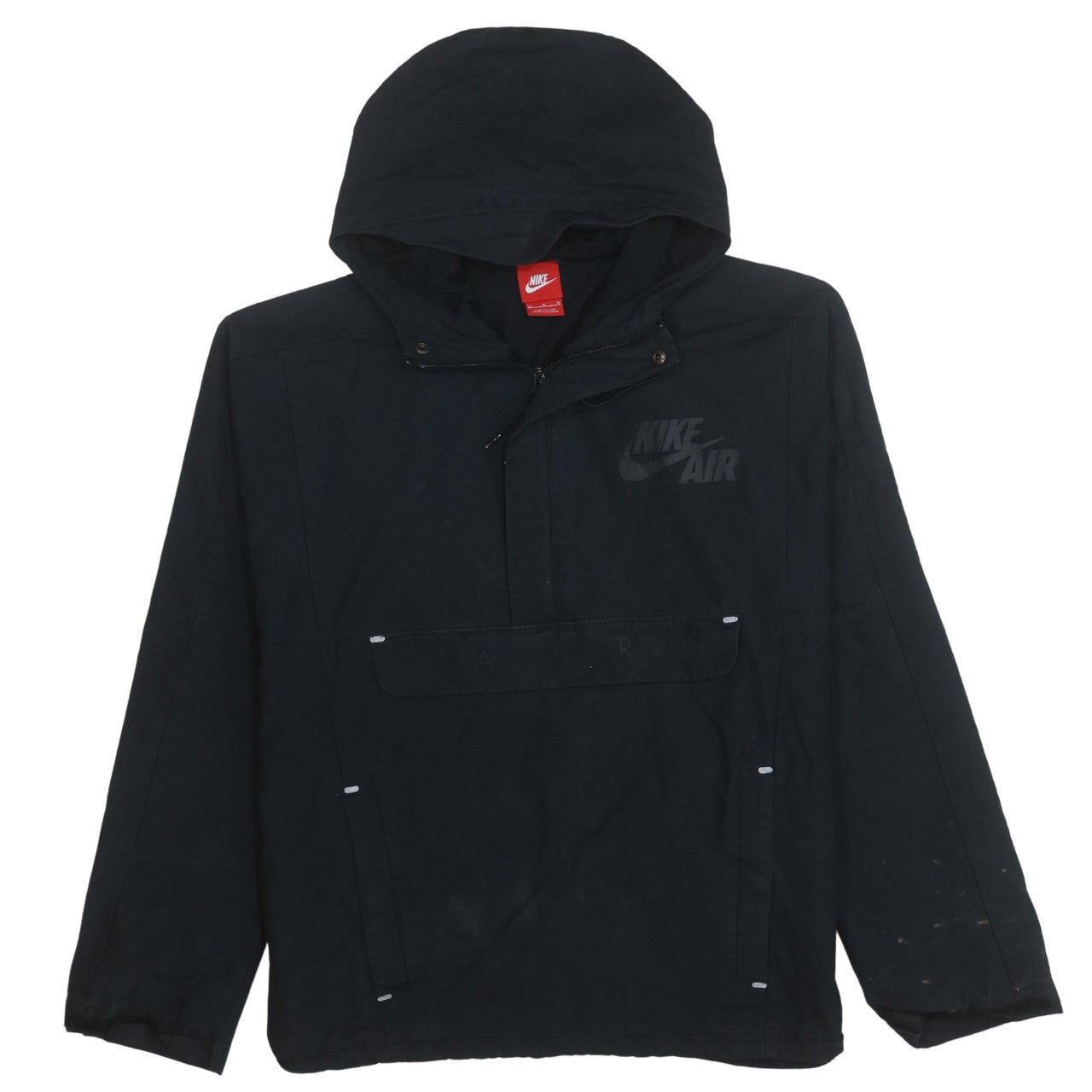 Stay stylish and comfortable in this Nike men’s black hooded anorak jacket, designed with both function and fashion in mind. Crafted from durable polyester with a lightweight microfibre feel, this jacket offers reliable protection from the wind, making it a great option for outdoor wear in spring and autumn. The windproof outer shell combined with a breathable polyester lining ensures lasting comfort, whether you’re out on a jog, walking through town, or heading off to a casual event.Featuring Nike’s iconic Air logo on the chest, this jacket blends sporty aesthetics with everyday practicality. It has a half-zip closure, button fastening at the collar, and a front flap pocket for easy storage. The adjustable hood adds an extra layer of coverage against unpredictable weather, while the regular fit allows easy layering over T-shirts or sweatshirts. This jacket’s simple black tone gives it versatile appeal, pairing effortlessly with any outfit.Perfect for those on the go, this Nike Air anorak is ideal for casual days, travel, or light outdoor activities. Its sleek mid-length design and functional detailing, including zip accents and secure fastenings, make it a wardrobe essential for anyone who values practical fashion. Despite some light wear and minor surface marks, this piece remains in very good condition, maintaining its quality and appeal. With its clean design, subtle branding, and strong build quality, this Nike jacket is a dependable choice for comfort and style through multiple seasons. A perfect addition for any man looking to elevate casual and athletic looks alike.