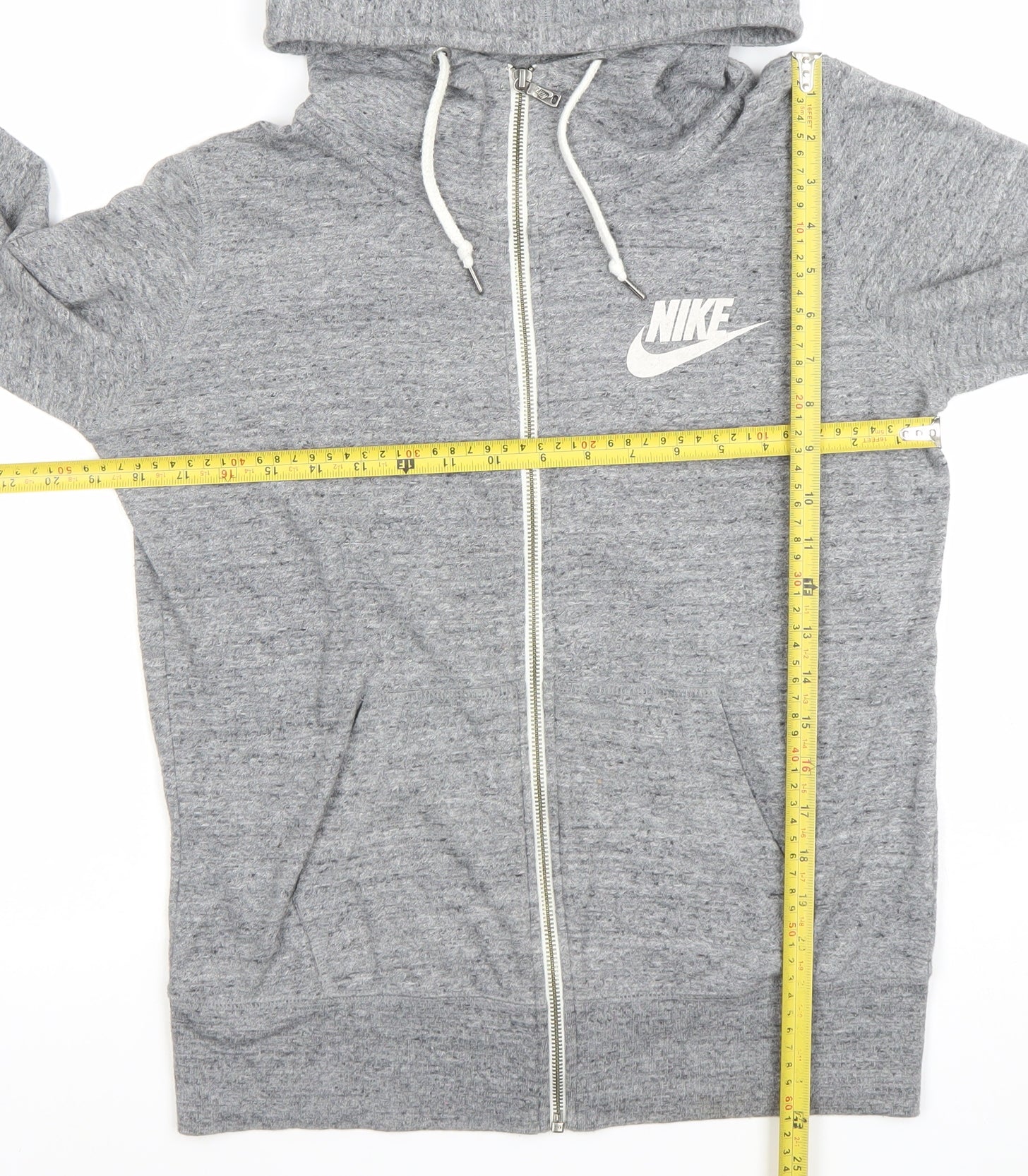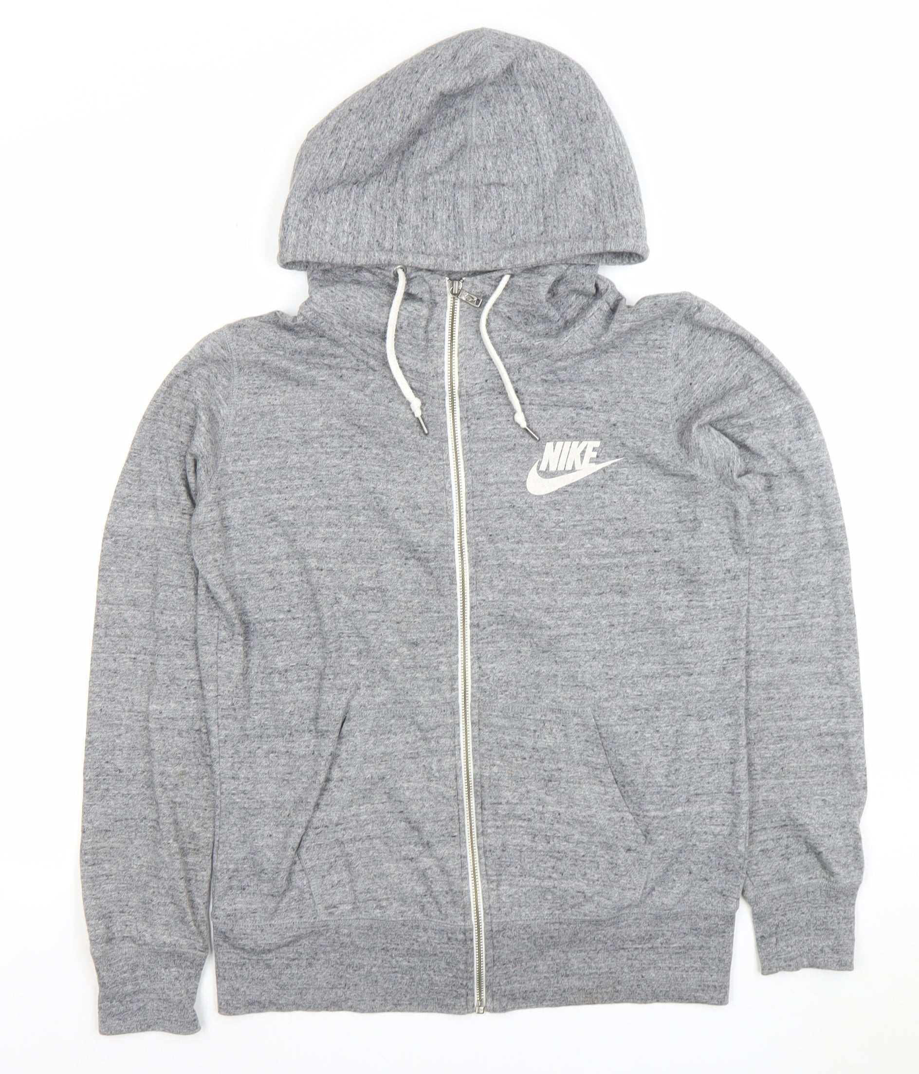 Stay comfortable and effortlessly stylish with this Nike Men’s Grey Full Zip Hoodie, designed for versatile wear throughout the year. Crafted from a soft and breathable blend of 60% organically grown cotton and 40% recycled polyester, this hoodie combines sustainable materials with classic sportswear comfort. The jersey fabric gives it a lightweight and flexible feel, ideal for layering during colder months or wearing on its own in milder weather. Featuring Nike’s iconic logo printed on the chest, this hoodie delivers the perfect fusion of casual fashion and athletic appeal. The full zip fastening allows for easy on-and-off wear, while the adjustable drawstring hood offers added practicality against the wind or chill. Two front hand pockets provide a convenient space for essentials or warm hands on cooler days. The ribbed cuffs and hem ensure a snug fit, maintaining a sleek silhouette without compromising comfort. In classic grey, this Nike hoodie pairs effortlessly with jeans, joggers, or shorts—making it a staple for daily wear, gym sessions, or weekend relaxation. Its durable construction means it will hold up to repeated washing, maintaining its shape and softness over time. Suitable for all seasons, this wardrobe essential delivers both quality and practicality for men seeking a timeless casual look.Conditioned as Excellent, this hoodie has been gently worn and well cared for, showing no flaws or visible damage. The premium materials and trusted Nike craftsmanship make it a smart choice for anyone after reliable style and performance. Whether you’re heading out for a casual stroll, working out, or relaxing at home, this hoodie ensures superior comfort and everyday sporty style.
