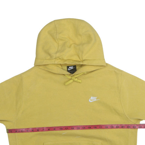 This Nike men’s yellow pullover hoodie is a versatile and comfortable casual essential, ideal for everyday wear or athletic activity. Crafted from a soft fleece blend of 80% cotton and 20% polyester, it provides warmth and durability while maintaining breathability. The hoodie features a drawstring adjustable hood, a front kangaroo pocket for practicality, and ribbed cuffs and hem for a secure fit. Its minimalist design is elevated by the iconic white Nike logo embroidered on the chest, adding an instantly recognisable sporty touch. The relaxed fit and long sleeves make this piece perfect for layering during cooler months or wearing solo in transitional weather. Designed for both style and function, this hoodie is suitable for a variety of occasions, from gym sessions and running errands to lounging or casual social outings. The yellow tone adds a cheerful pop of colour to any outfit, pairing effortlessly with jeans, joggers, or shorts. The interior’s soft-brushed fleece ensures lasting comfort, while the high-quality stitching enhances its longevity. Though gently worn with minor signs of use, it remains in very good condition overall, showing only light wear consistent with previous ownership. Machine washable and easy to maintain, it’s a practical choice for those who value both comfort and sporty aesthetics. Whether worn as part of a streetwear look or for performance training, this Nike hoodie delivers a timeless blend of functionality and effortless style that suits all seasons except high summer. A must-have staple for any wardrobe.
