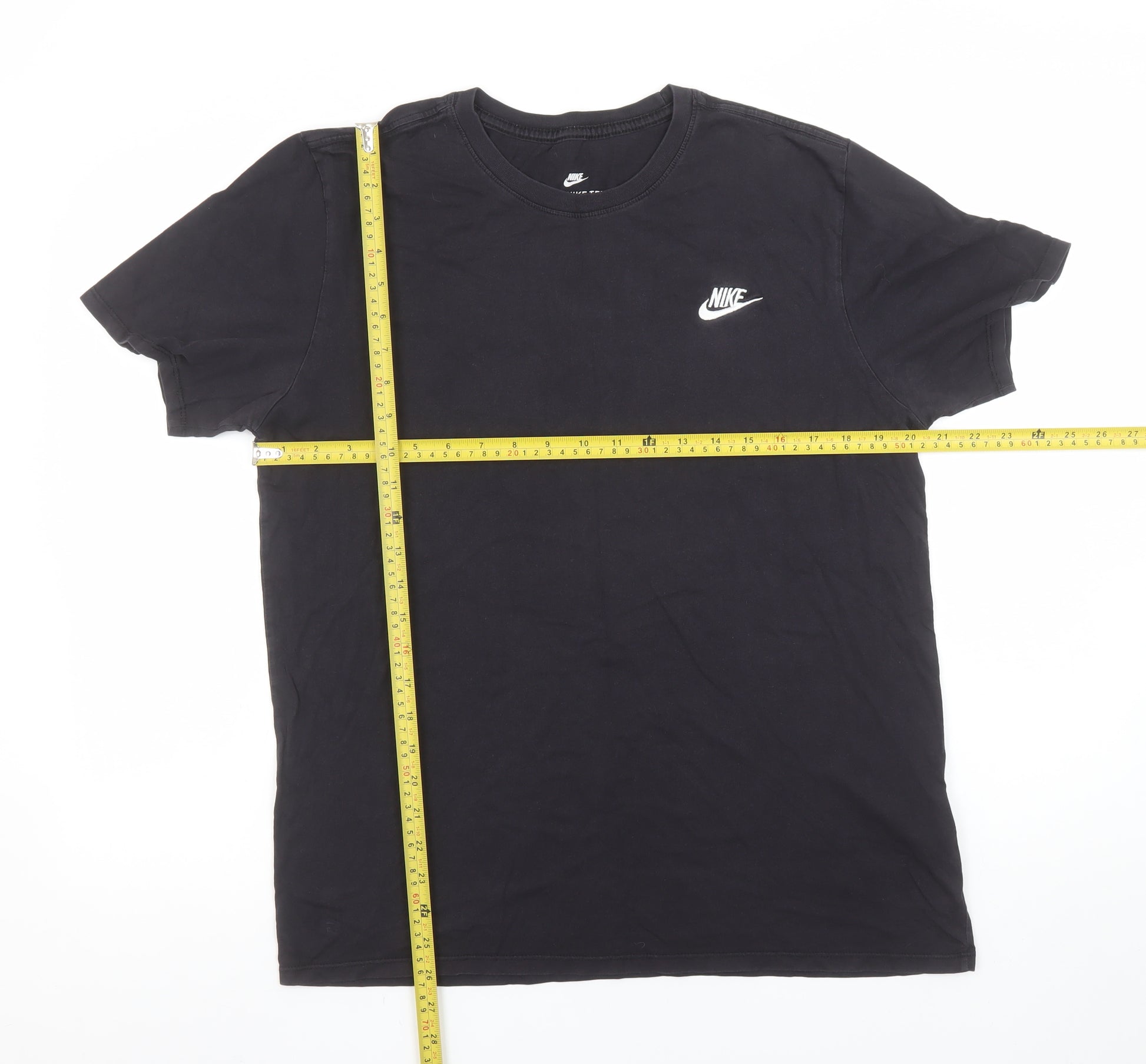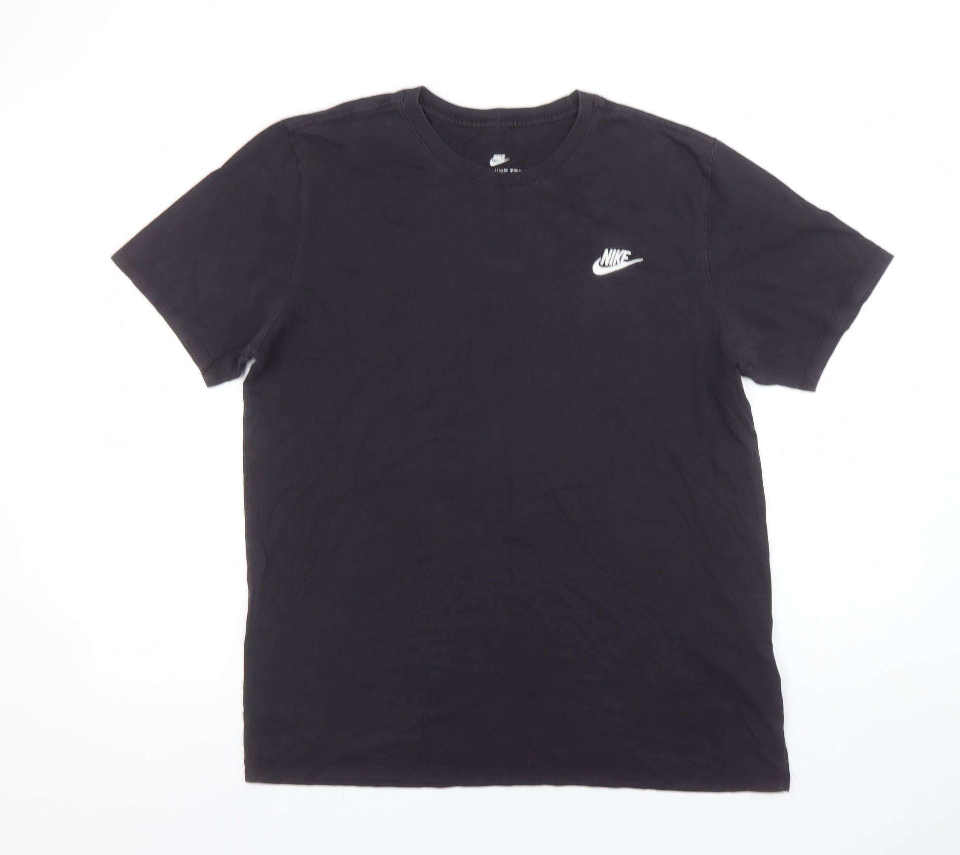 Add a touch of classic athletic style to your wardrobe with this Nike Men's Black Athletic Fit Crew Neck T-Shirt. Designed for ultimate comfort and effortless versatility, this short sleeve tee combines a sleek look with the premium quality you expect from Nike. Made from 100% cotton, the soft jersey fabric is breathable and lightweight, making it ideal for everyday wear, workouts, or casual outings. The solid black colour gives it an understated appeal, while the signature Nike logo printed on the chest adds an instantly recognisable sporty edge. This T-shirt features an athletic fit that provides a flattering, slightly tapered silhouette without compromising on comfort or movement. The crew neckline ensures a timeless and comfortable shape that pairs perfectly with any outfit, from jeans and joggers to shorts and layered looks. Crafted with durable cotton and designed for ease of care, it remains a wardrobe essential that withstands everyday wear. Ideal for layering under jackets or hoodies, or wearing solo during warmer months, this Nike tee transitions effortlessly across seasons — from spring and summer right through to autumn. The condition is excellent, with light signs of previous wear but no flaws or visible damage, ensuring it still looks sharp and ready to wear. A versatile essential, this men’s Nike T-shirt captures the perfect balance between comfort, performance, and iconic brand style. Whether you’re heading to the gym, taking on outdoor adventures, or just relaxing off-duty, this classic piece makes a reliable and fashionable choice. Elevate your everyday basics with this genuine Nike athletic tee — a must-have for active men who appreciate both quality craftsmanship and timeless style. Perfect for pairing with trainers and Nike accessories, it’s an effortless foundation for any contemporary or casual outfit.