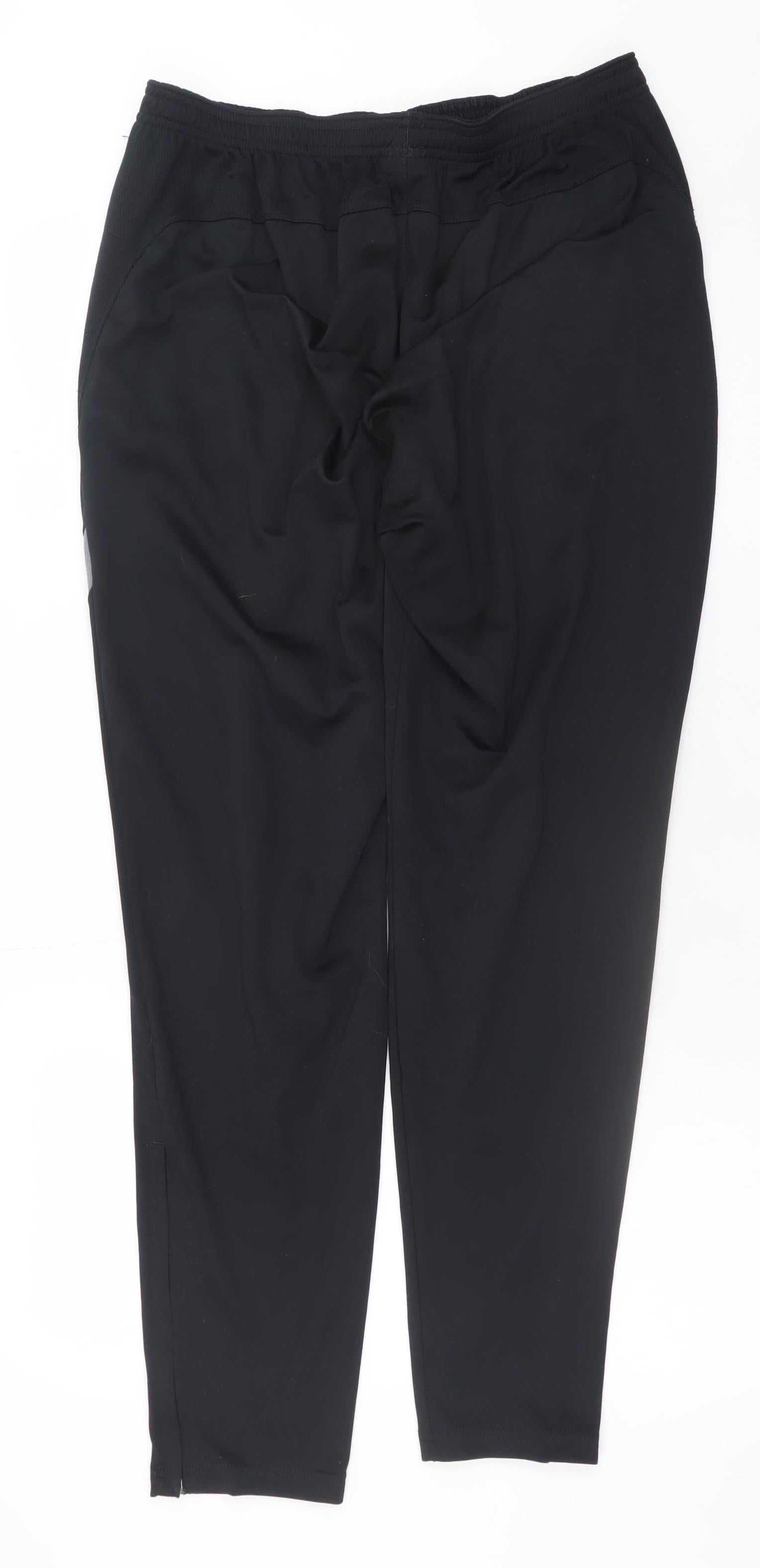 Stay comfortable and effortlessly stylish in these Nike Men's Black Dri-FIT Jogger Trousers, designed for active lifestyles and casual wear alike. Crafted from 100% polyester with Nike’s signature Dri-FIT technology, these joggers wick away moisture to keep you dry and comfortable throughout the day. The lightweight microfibre fabric ensures breathability while maintaining a sleek, athletic look that’s perfect for workouts, travel, or relaxed lounging.Featuring a modern tapered leg style, these trousers combine a sporty silhouette with practicality. The elasticated waist and adjustable drawstring closure provide a custom fit, allowing ease of movement whether you’re at the gym or running errands. The design is enhanced with subtle Nike branding, including the iconic swoosh logo on the leg, paired with reflective detailing for added visibility. Side slash pockets offer convenient storage for small essentials, while zip detailing at the ankles makes them easy to pull on over trainers.The classic black colourway ensures versatility, allowing you to pair these trousers with anything from athletic tops to casual hoodies. Ideal for all seasons, they deliver comfort in spring, summer, autumn, or winter. The regular fit flatters most body types, giving a clean and tailored appearance without feeling restrictive.Perfect for men who appreciate functionality and style, these joggers combine performance-ready features with everyday wearability. Machine washable for easy maintenance, they are a durable wardrobe staple built to last. Although pre-loved, they remain in excellent condition with minimal signs of wear, ensuring great value for high-performance apparel.Whether for sports, gym sessions, or casual streetwear, these Nike Dri-FIT joggers provide unbeatable comfort and quality. Add them to your collection for a reliable pair of trousers that blend athletic innovation with timeless style.