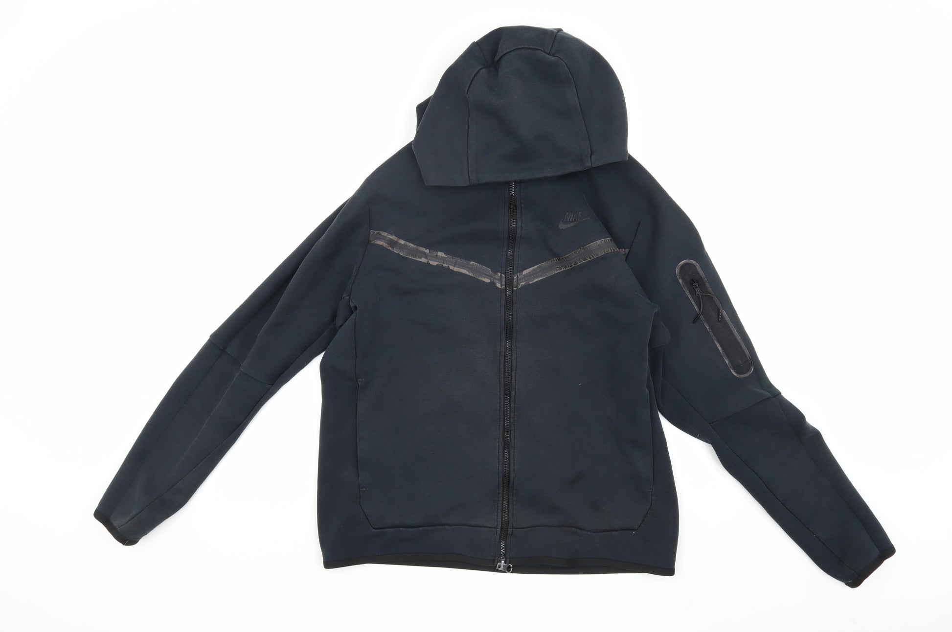 This Nike Men's Black Full Zip Hoodie is the perfect blend of comfort and style for any casual outing or athletic activity. Crafted with a combination of cotton and polyester, this hoodie ensures both warmth and breathability. The classic black colour adds a versatile touch, making it easy to pair with any outfit. Tailored for a regular fit, it features a convenient zip closure, allowing you to adjust your comfort level. The hooded design offers added protection against unpredictable weather, while its long sleeves provide warmth during cooler days. Emblazoned with the iconic Nike logo, this hoodie not only stands out but also showcases your brand preference. Ideal for running, jogging, or simply lounging, it combines functionality with style effortlessly. Machine washable, it promises easy maintenance. Slight wear is visible, yet it remains in excellent condition, promising durability for future adventures.