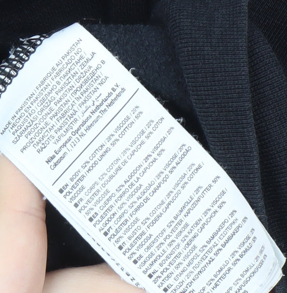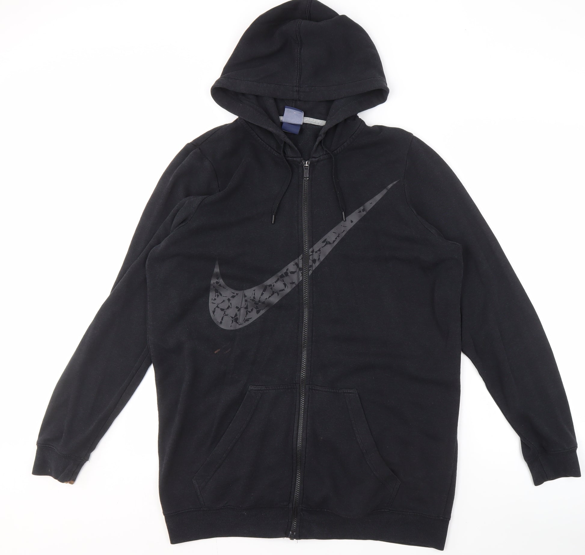 Elevate your casual wardrobe with this Nike men's hoodie. Crafted for comfort and style, it features a full-zip design with a striking logo accent, perfect for showcasing your brand pride. Made from a cosy blend of cotton and viscose, this hoodie offers excellent comfort and durability, ideal for chillier autumn and winter months. The classic black colour makes it versatile enough to match any outfit, while the practical hood and pockets provide functional flair. Despite some stains on the cuff and front, which have been considered in the price, this hoodie remains a stylish choice for leisure and sporty occasions. Machine washable for easy care, it’s a straightforward choice for your daily wear collection.