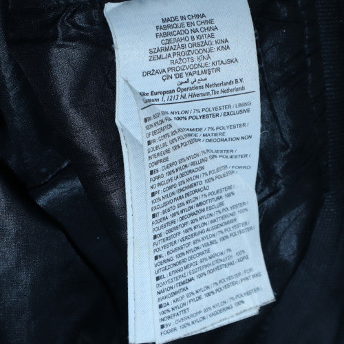 This Nike mens black grid track jacket offers both comfort and modern sporty style, ideal for active and casual wear. Crafted from a durable lightweight nylon and polyester blend, it delivers breathability and movement flexibility for an easy-going fit during workouts or everyday use. Designed with a subtle grid pattern throughout and featuring Nike’s attention to performance quality, this jacket merges modern design with functional details. The bright orange zip chest pocket adds a stylish accent to the minimalist dark aesthetic, providing extra utility while standing out as a signature design element. The regular fit ensures comfortable layering over sportswear or casual outfits. Practical features include a full snap and zip closure for versatility and protection during cooler days, and lined interior for added comfort. Ribbed cuffs and hem help maintain warmth and structure for a sharp silhouette, while maintaining flexibility for movement. This jacket is ideal for jogging, gym sessions, or simple day-to-day wear. Its short cut and lightweight woven construction make it great for layering through spring and autumn. Machine washable for easy care, it’s a reliable piece for those who value everyday sports fashion with understated appeal. The overall condition is excellent with only light general signs of gentle use and no visible flaws, making it a quality pre-owned item ready for continued wear. Combining Nike’s innovation and timeless sportswear design, this garment is a great addition to any active wardrobe, delivering durability, breathability and effortless urban style.