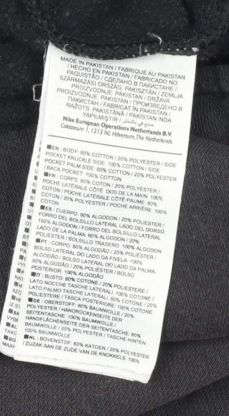 Step up your activewear collection with these Nike Men's Jogger Trousers, designed in classic black to offer both style and versatility for any occasion. Whether you're at the gym, on a run, or simply enjoying a casual day out, these joggers are perfect for all-around comfort. Made from a blend of 80% cotton and 20% polyester, they promise the softness of cotton combined with the durability and flexibility of polyester, ensuring an optimal balance for activewear.These trousers are crafted with a regular fit and a tapered leg style, providing a sleek look while offering maximum freedom of movement. The elastic waist with a drawstring closure delivers a customisable fit, keeping you comfortable during your workouts. Furthermore, the side pockets are a convenient addition, perfect for storing essentials when you're on the go.Suitable throughout all seasons, these joggers are a staple piece for any activewear wardrobe. The garment is machine washable, making care easy and straightforward, allowing you more time to spend on the things you love. As the trousers are in excellent condition with only slight wear visible, they're an attractive option for those seeking quality at great value. Indulge in the comfort and iconic style of Nike with this essential piece today.